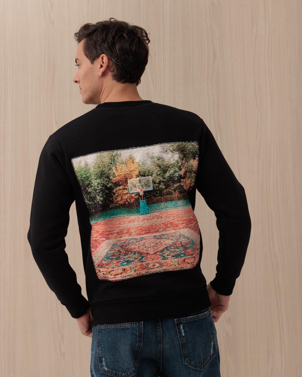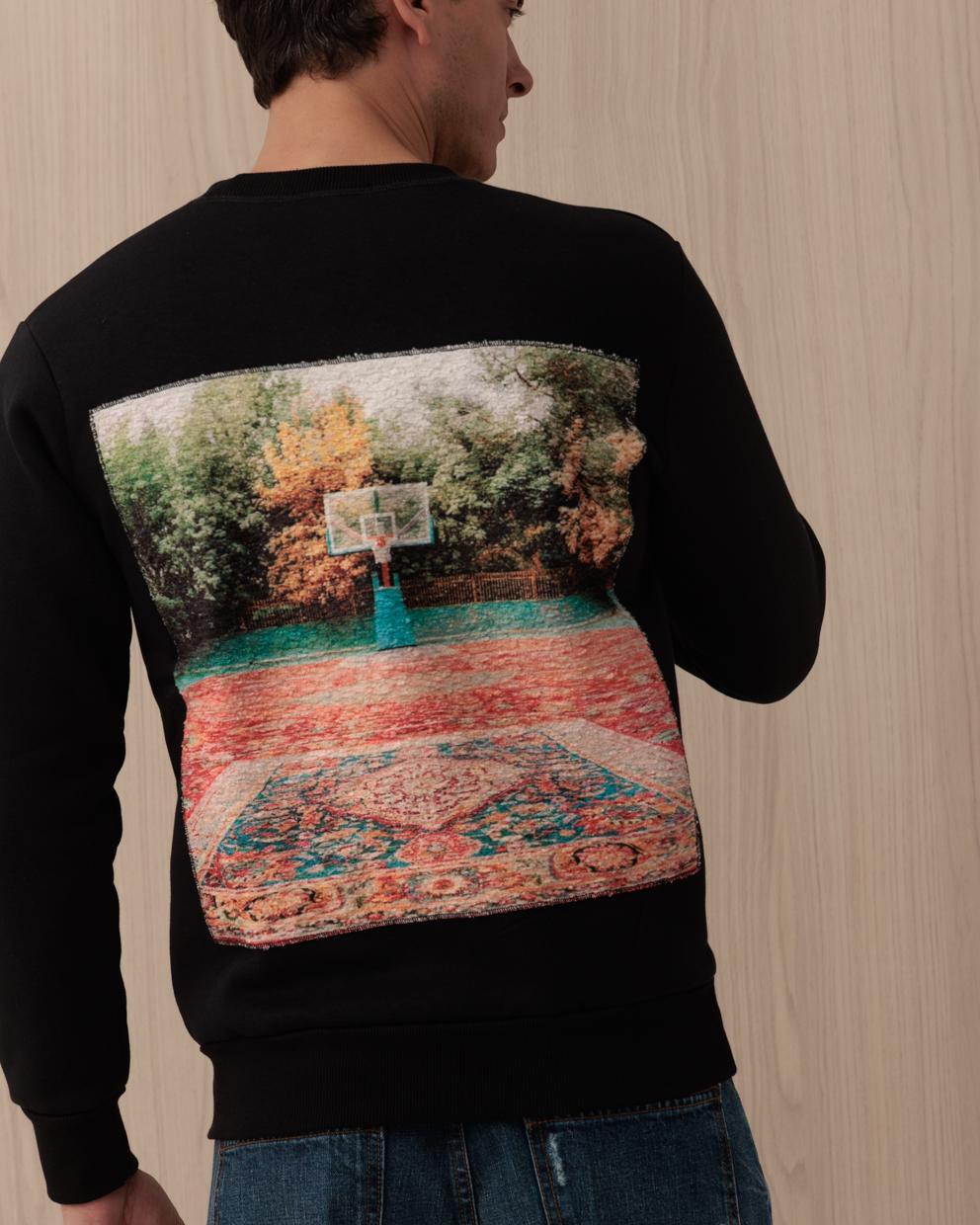Felpa Girocollo BASTILLE Nero in Tessuto da Basket