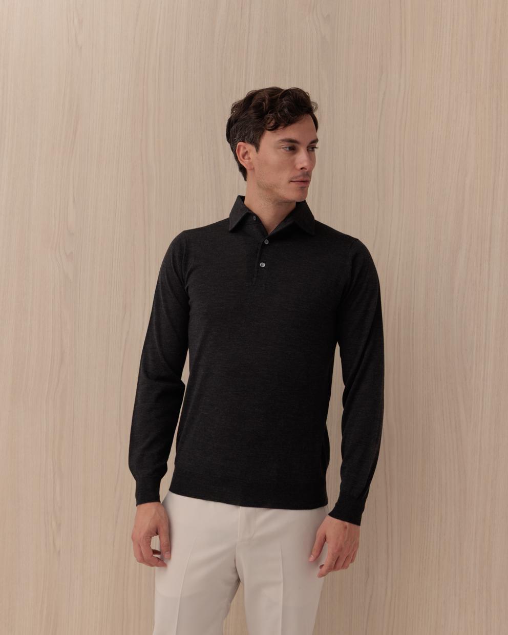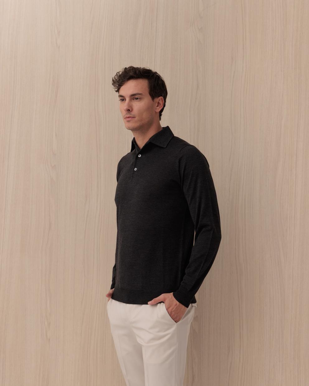 Polo Manica Lunga LARDINI Grigio in Cotone