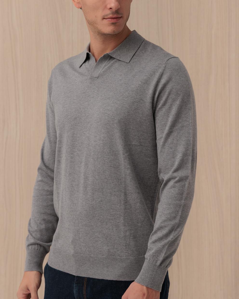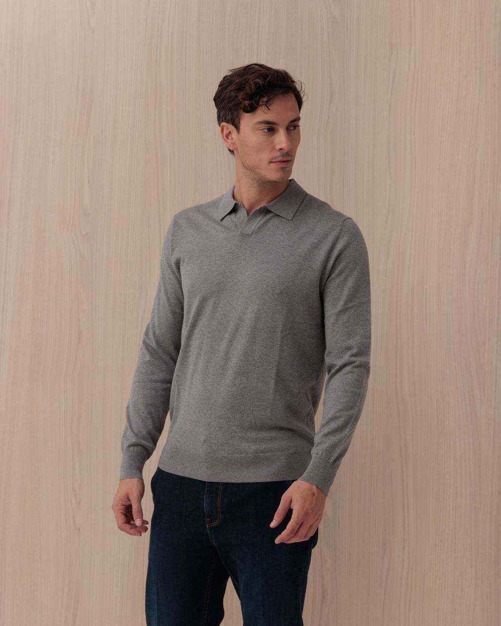 Polo Manica Lunga PEOPLE OF SHIBUYA Grigio Cotone e Cachemire
