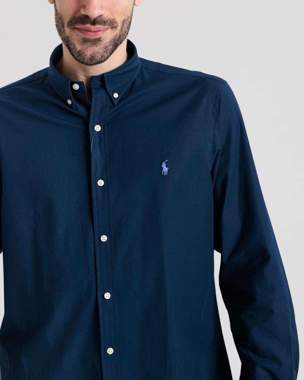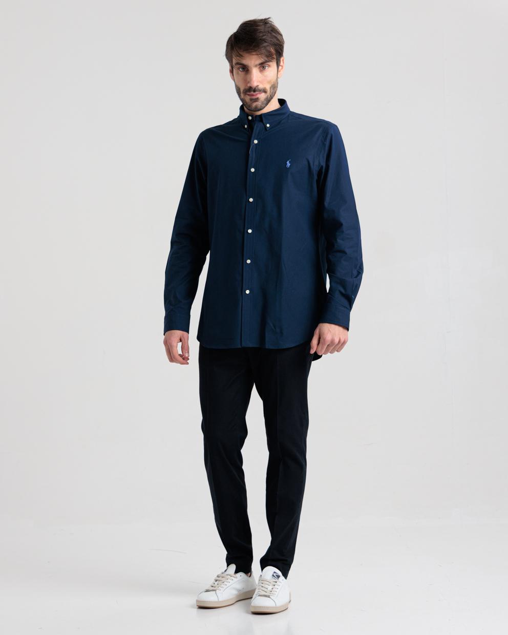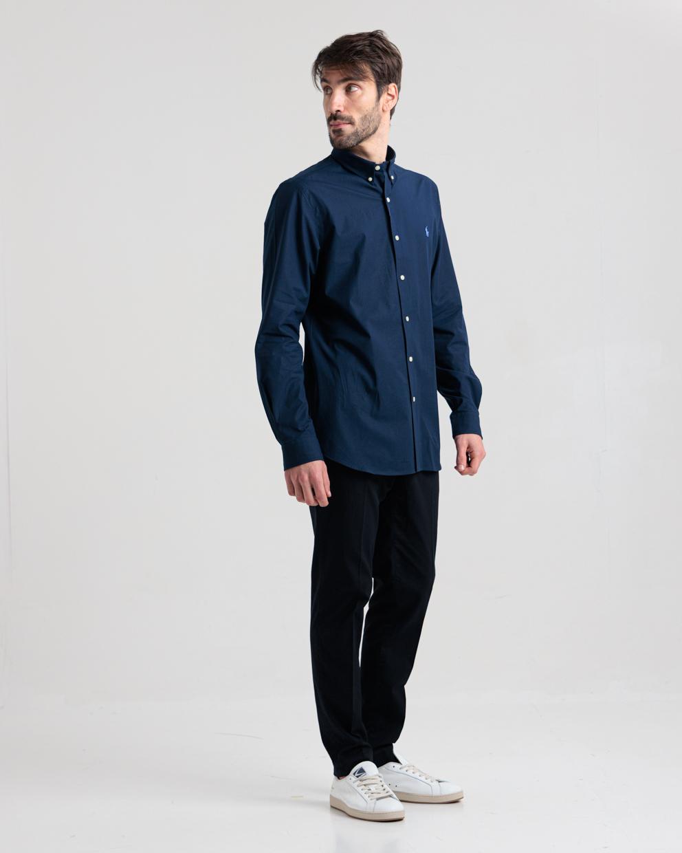 Camicia blu in cotone custom fit