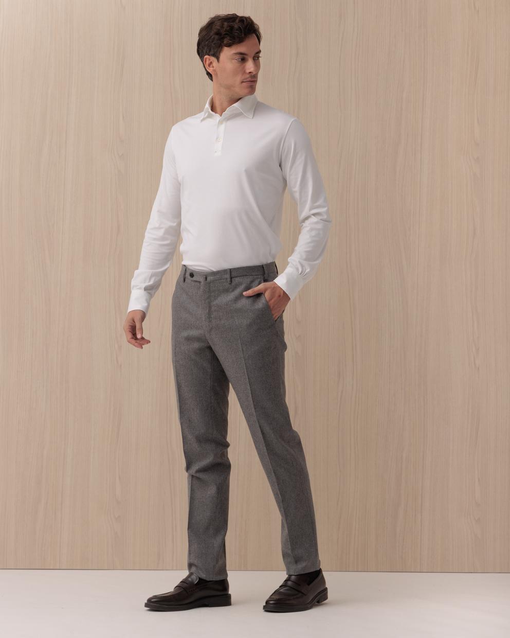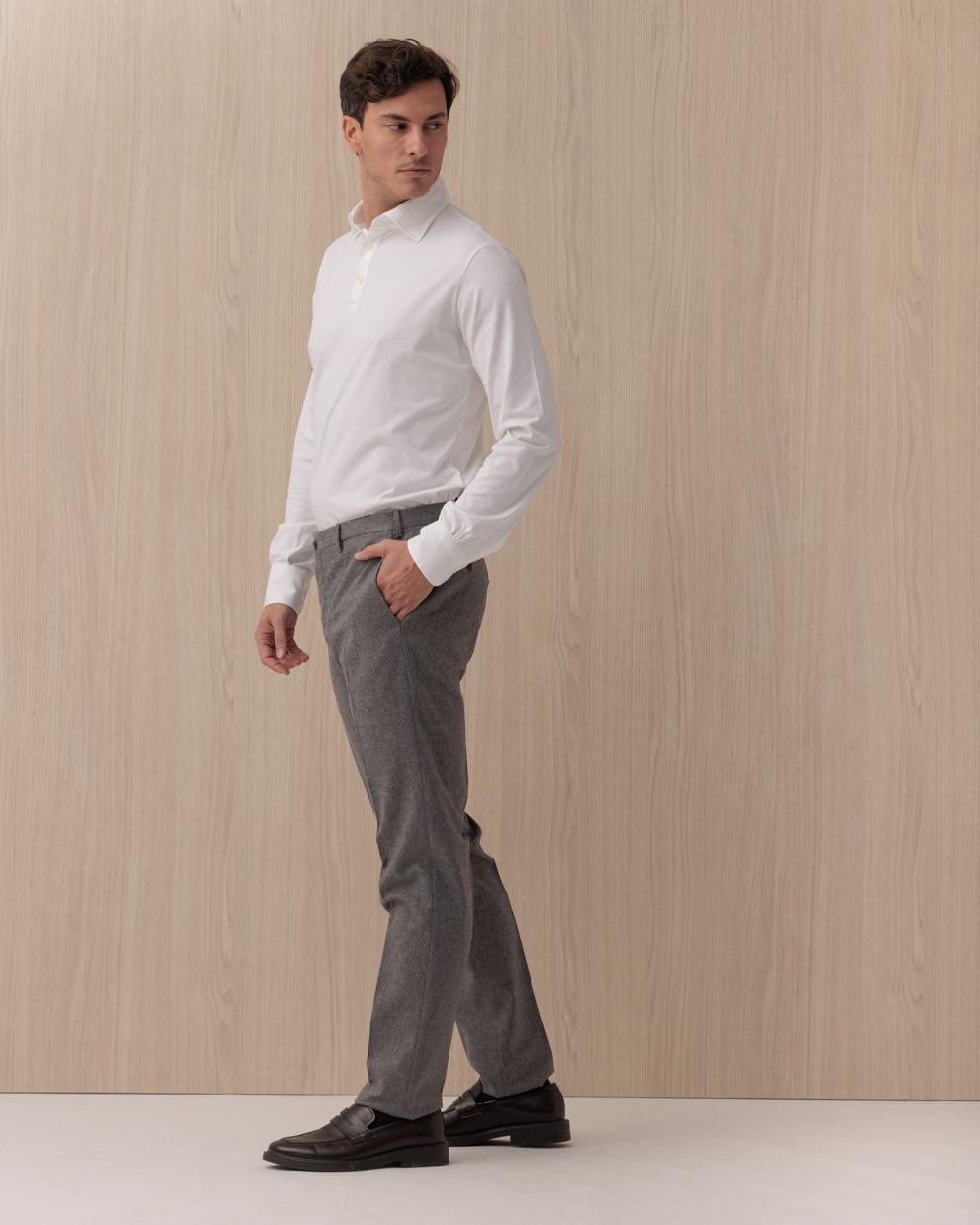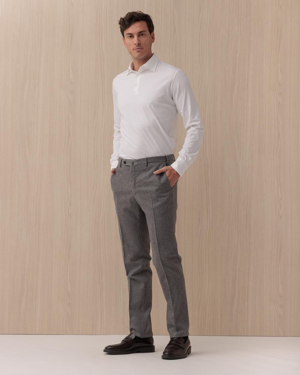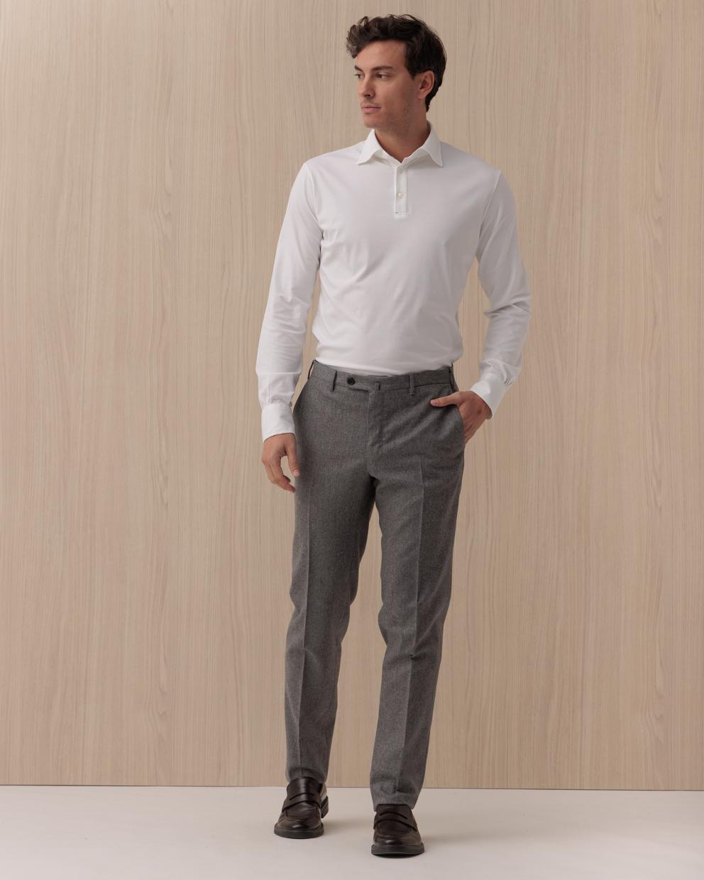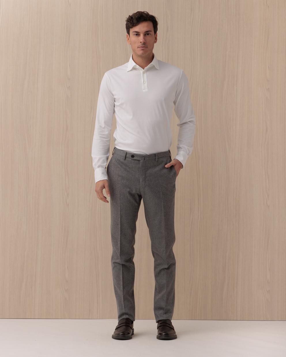 Scopri l'eleganza senza tempo dei pantaloni INCOTEX, realizzati in morbida lana grigia per la stagione Autunno/Inverno 2026. Questi pantaloni sono un omaggio alla tradizione sartoriale, con una vestibilità Regular Fit che offre comfort e stile impeccabile. Ideali per un weekend in città o un incontro formale, rappresentano la scelta perfetta per l'uomo che apprezza i dettagli raffinati e la qualità artigianale. - Chiusura con zip e bottone - Tasche laterali oblique e taschino - Due tasche laterali a filetto con bottone asolato