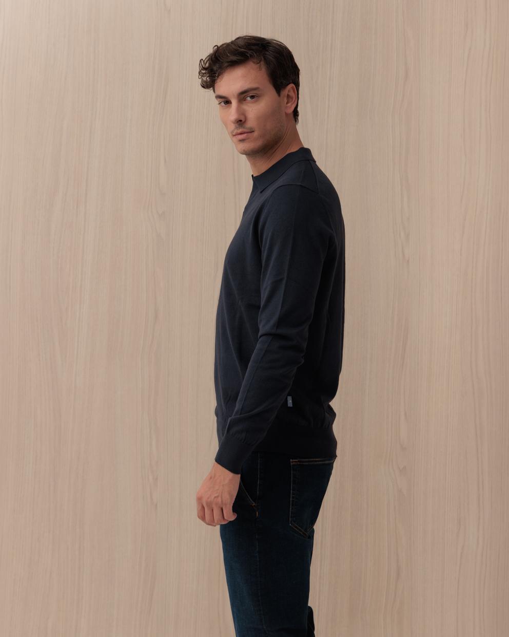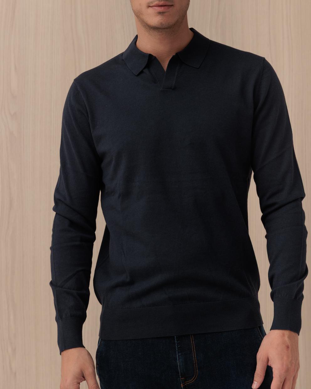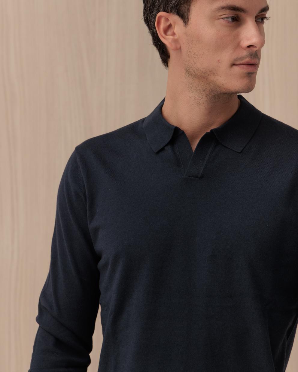 Polo Manica Lunga PEOPLE OF SHIBUYA Blu in Cotone e Cachemire