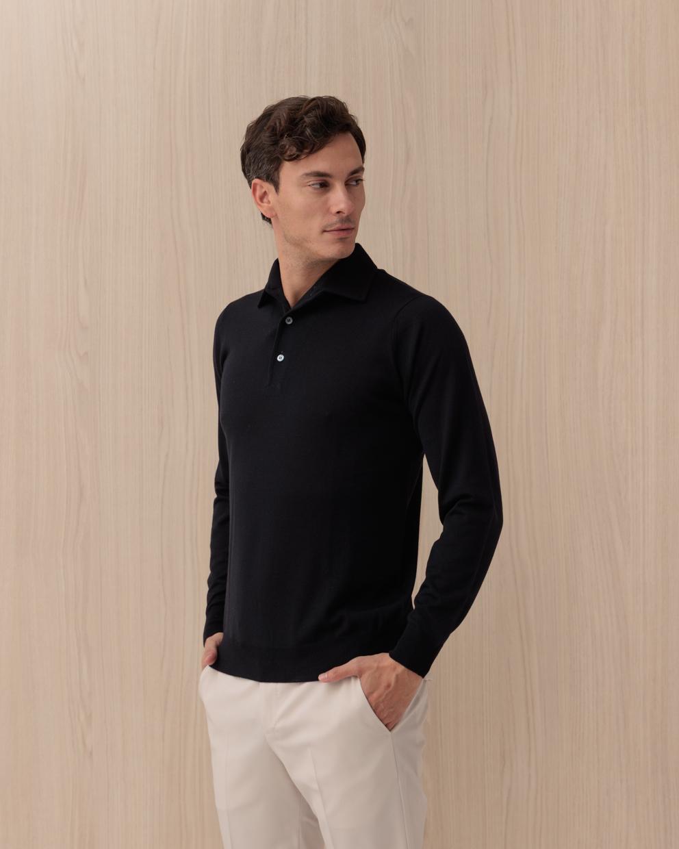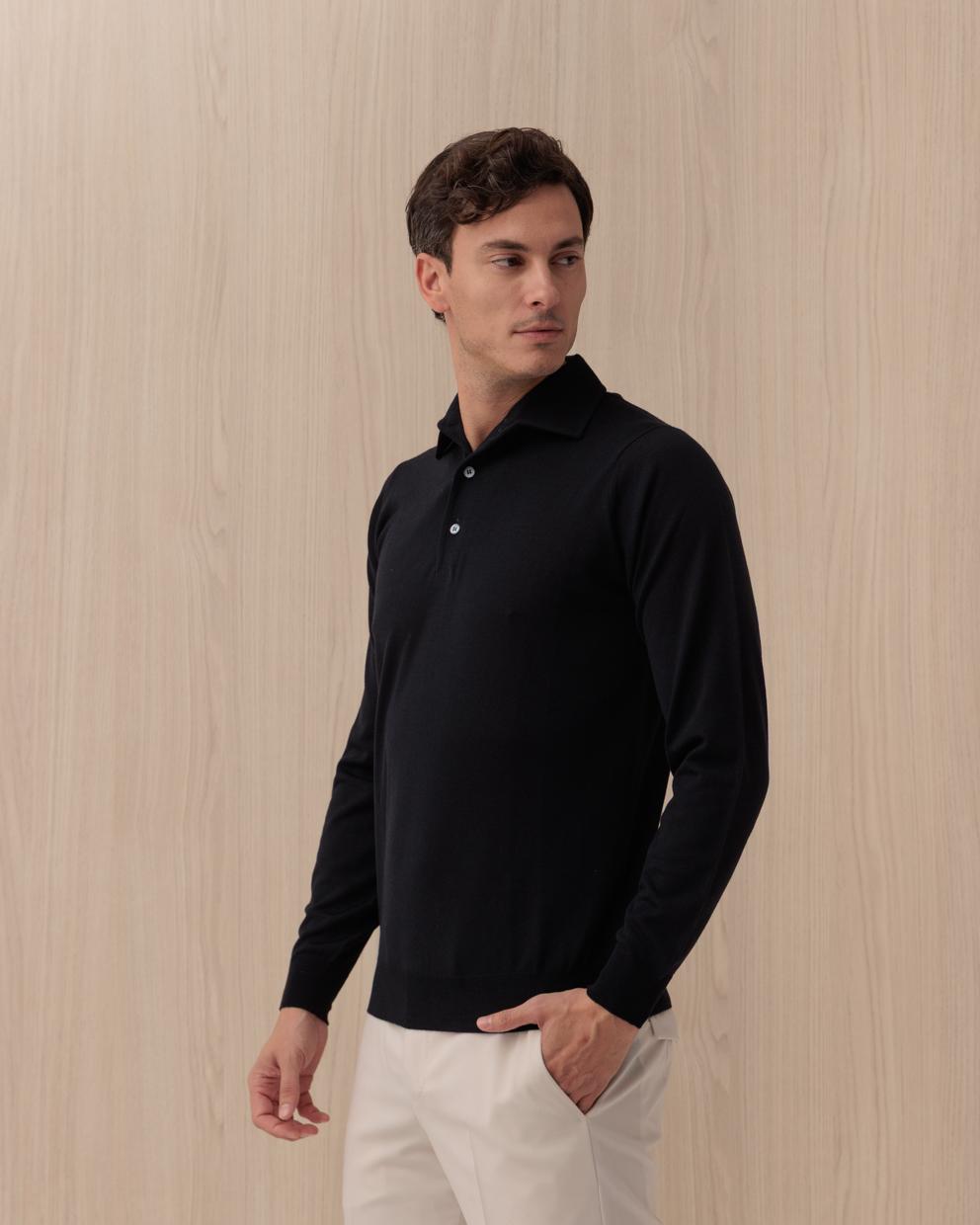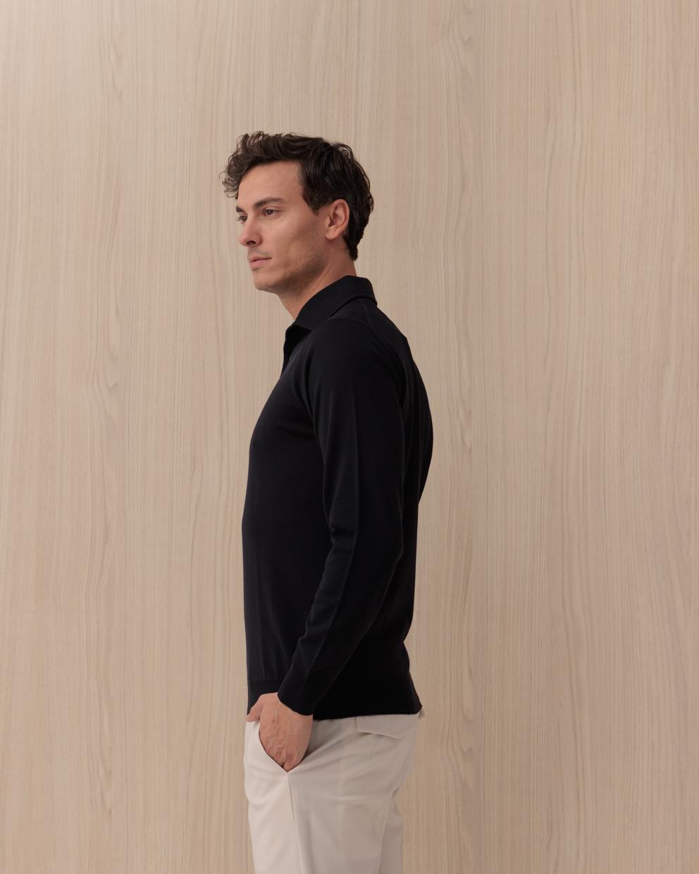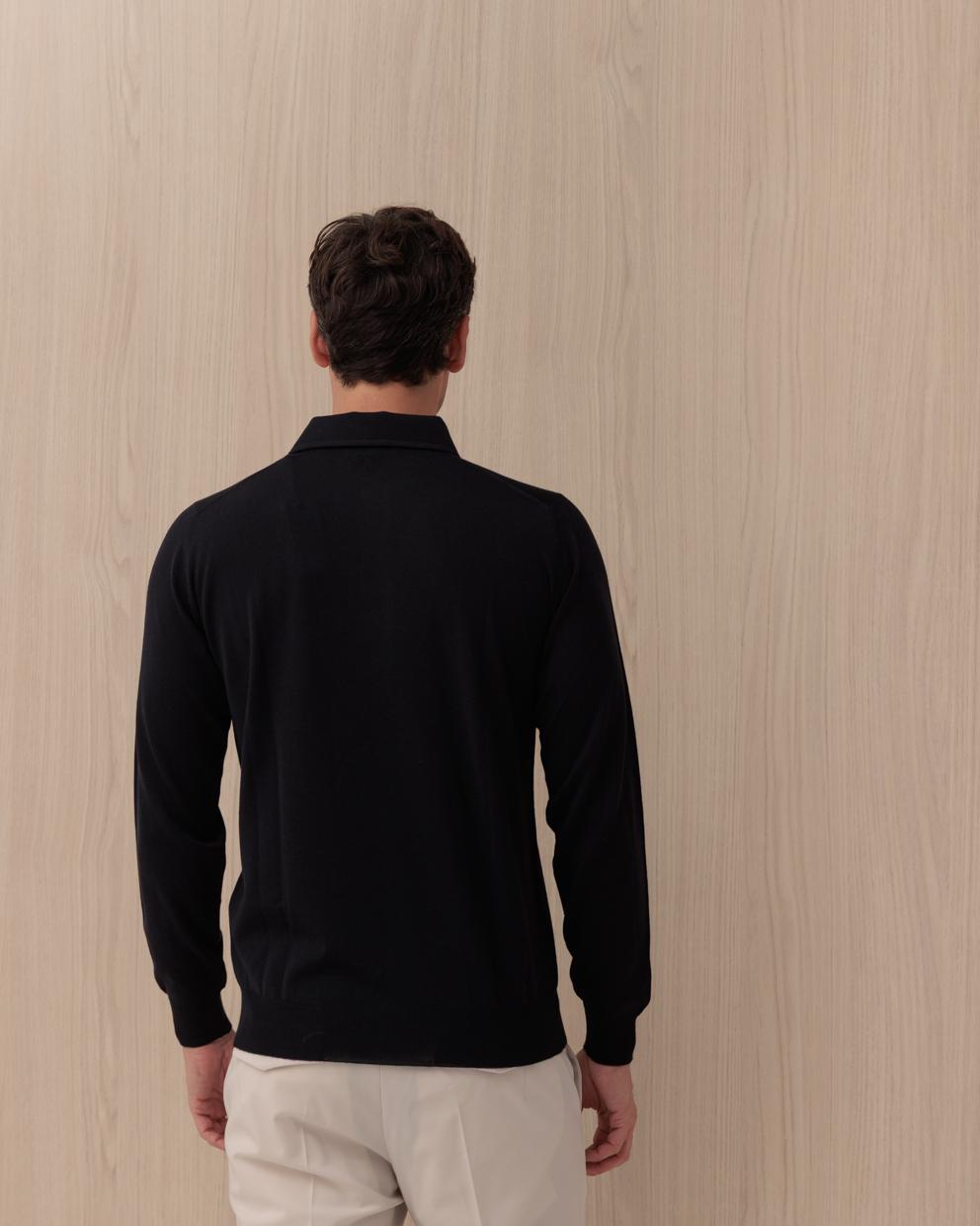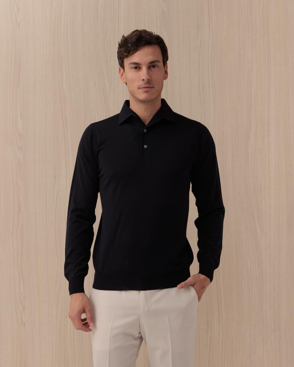 Polo Manica Lunga LARDINI Blu in Cotone e Lana