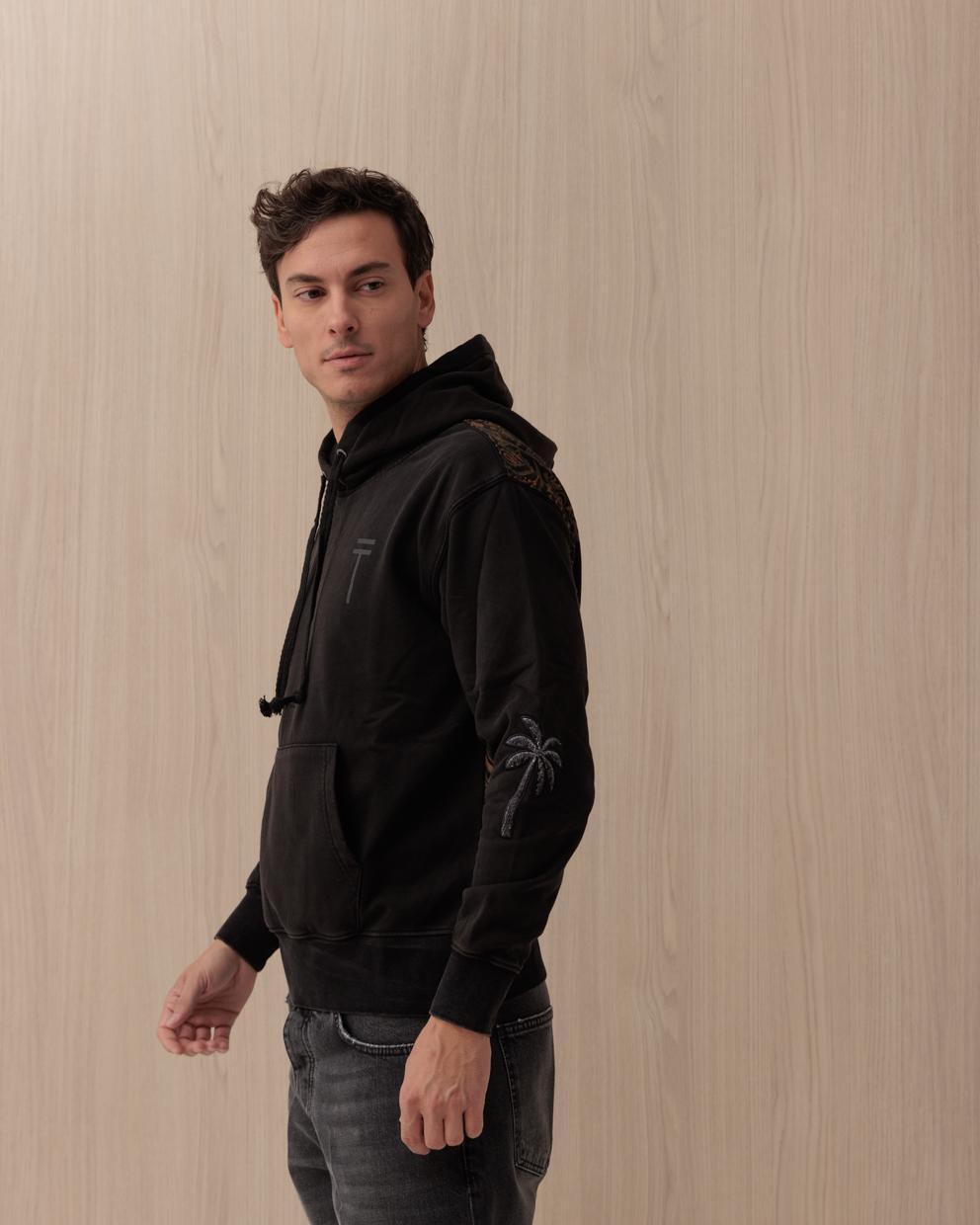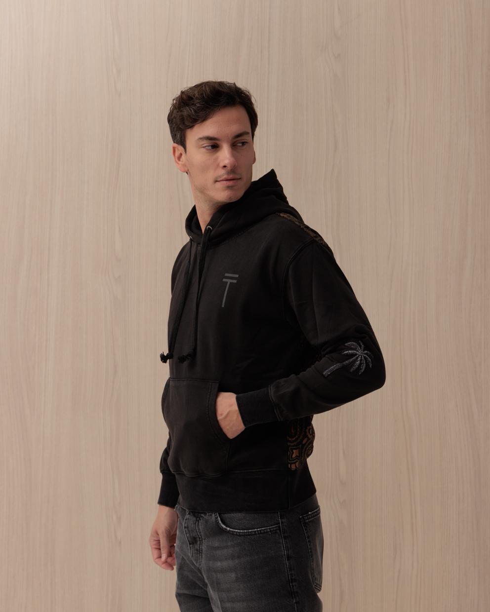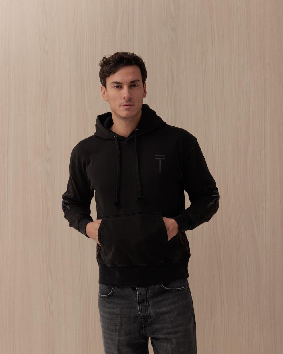 Felpa Con Cappuccio TOOCO Nero in Tessuto Wash
