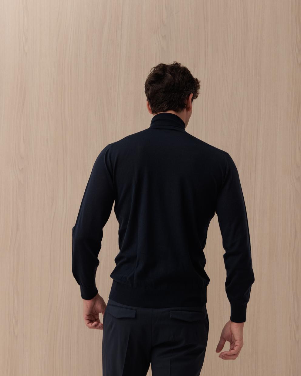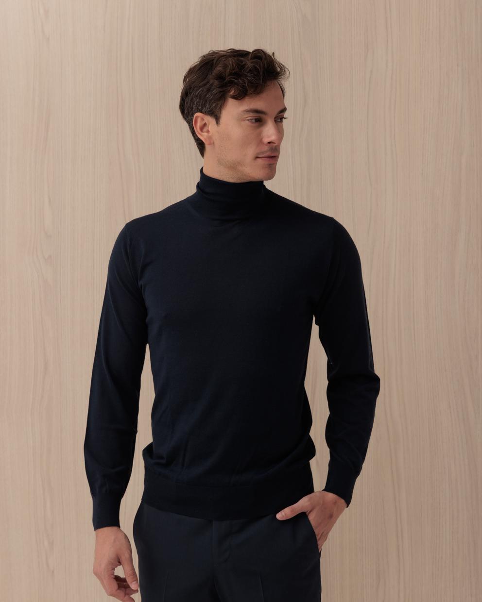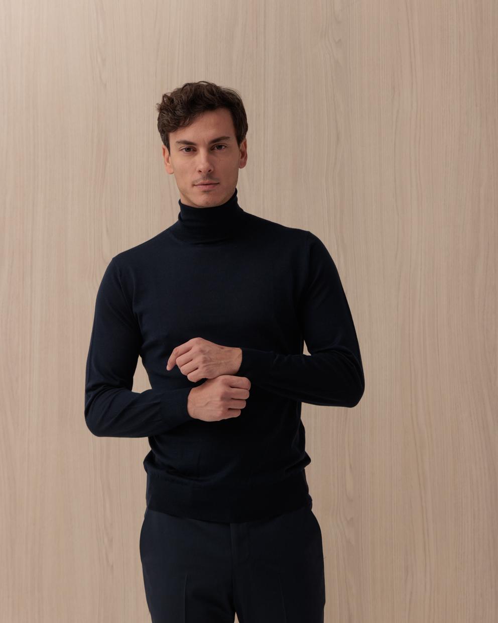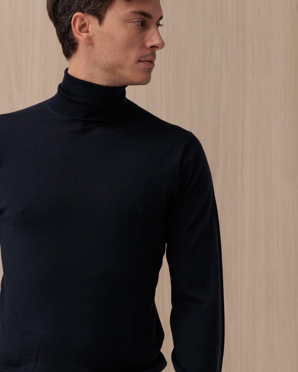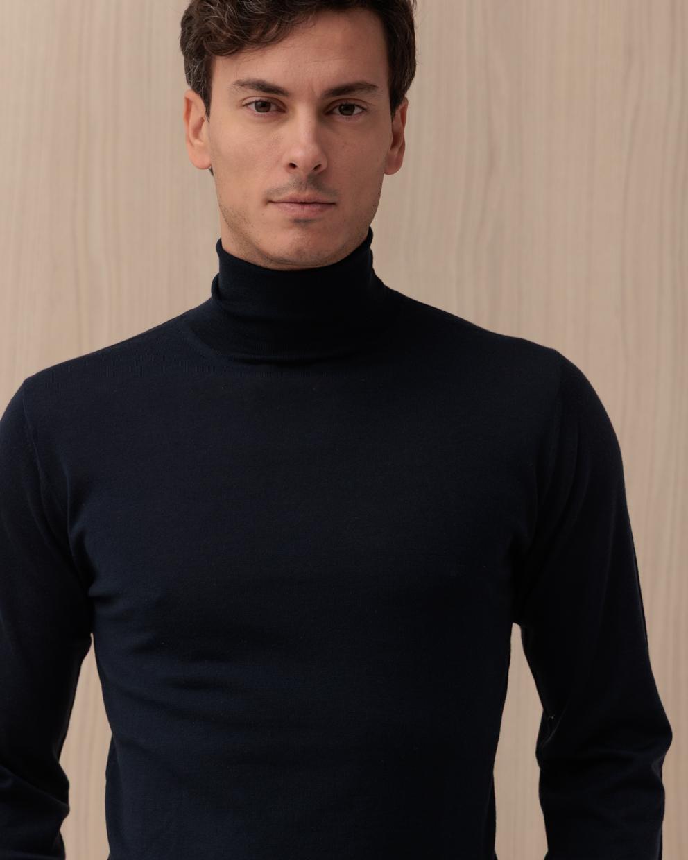Maglia KANGRA blu in lana a coste collo alto
