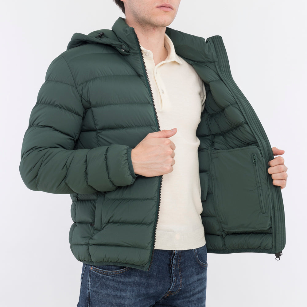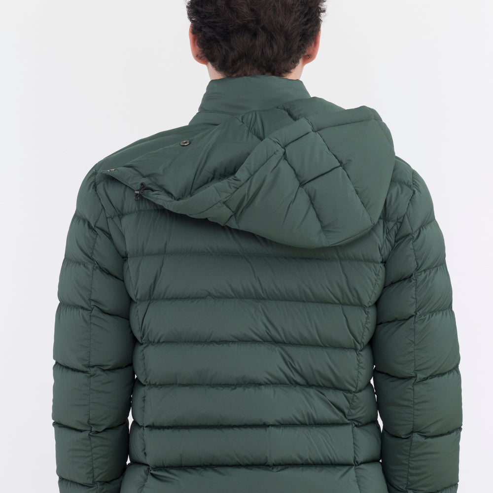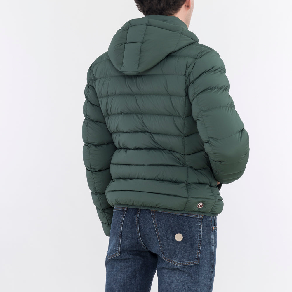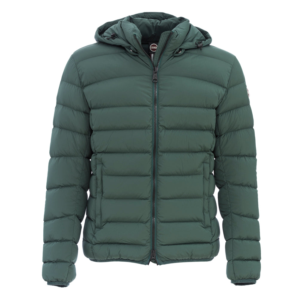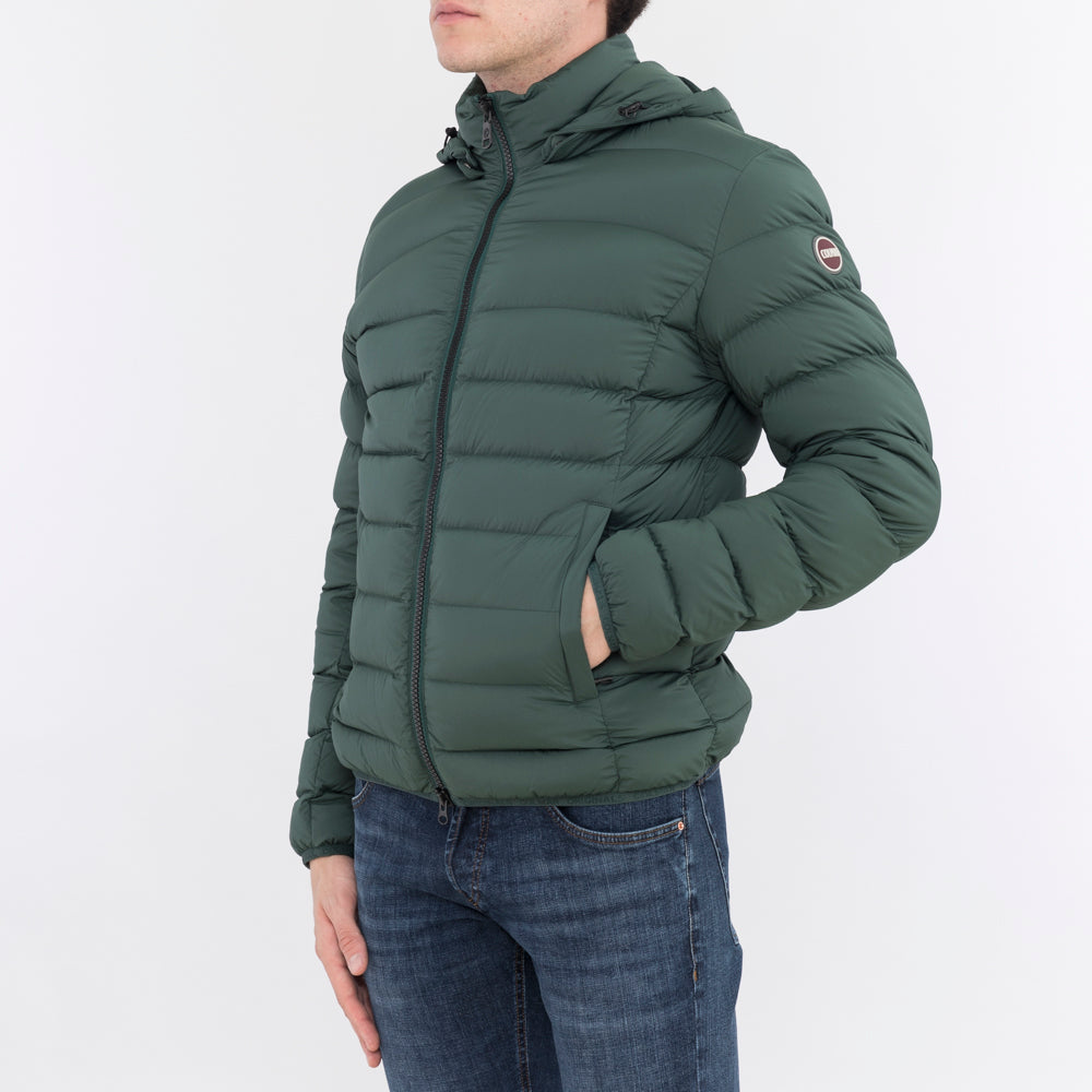 Herrenjacke mit abnehmbarer Kapuze, aus Stretchmaterial mit wasserabweisender Behandlung und gefüttert mit natürlichen Daunen. Ein zeitloses Modell mit gleichmäßiger Steppung am ganzen Körper und passendem Gummiband an den Bündchen und am Saum. Praktische Seitentaschen und praktische Innentasche. Durch den Kordelzug an der Kapuze lässt sich die Größe anpassen. Normale Passform. Wintergewicht. Reißverschluss. Seitentaschen und Innentasche mit Reißverschluss. Abnehmbare Kapuze mit Druckknöpfen. Verstellbarer Kordelzug an der Kapuze. Elastisches Band an Bündchen und Saum. Polsterung aus Naturfedern. Wasserabweisende Behandlung. Auf dem linken Ärmel angebrachtes Colmar Originals-Logo.