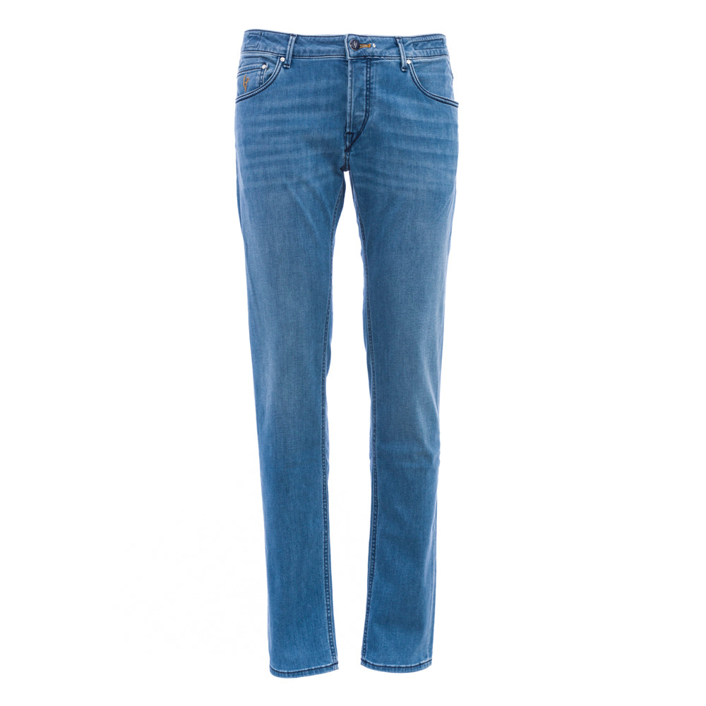 Five-Pocket-Jeans mit Knopfverschluss und Gürtelschlaufen an der Taille.