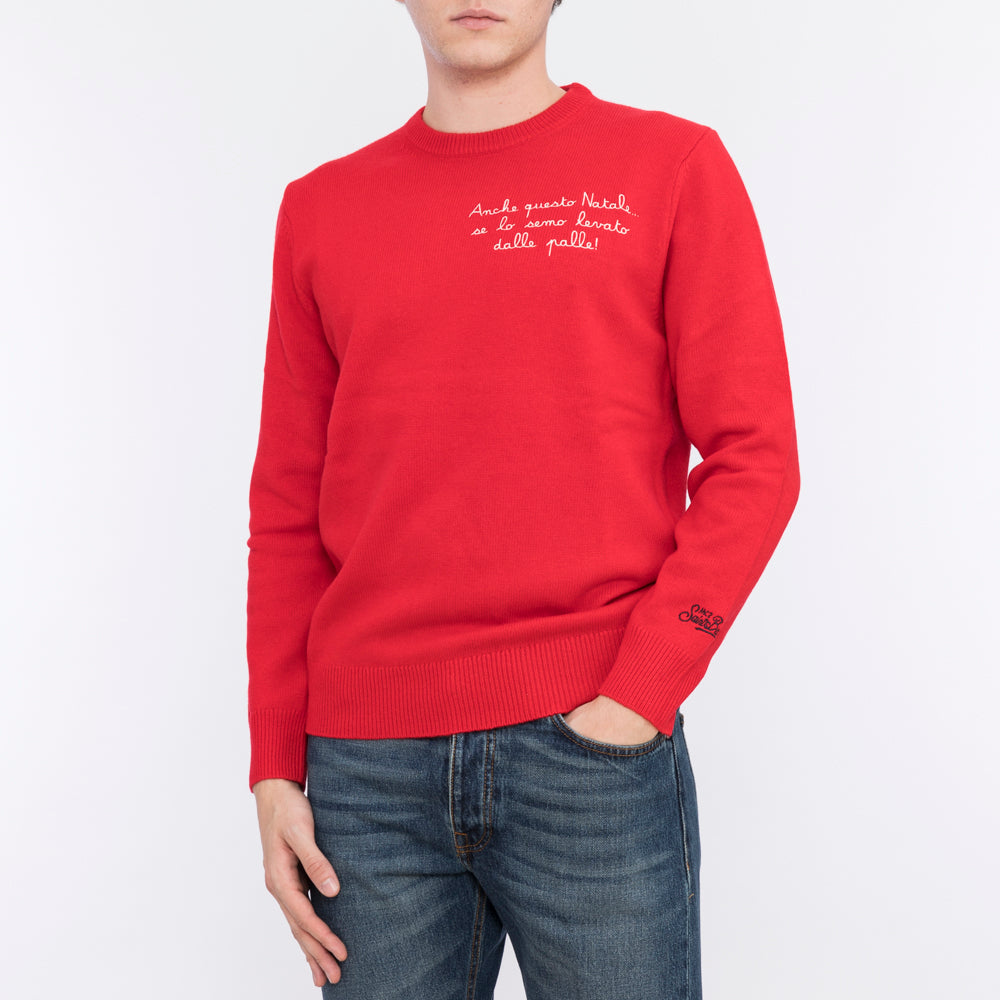 Roter Rundhals-Pullover