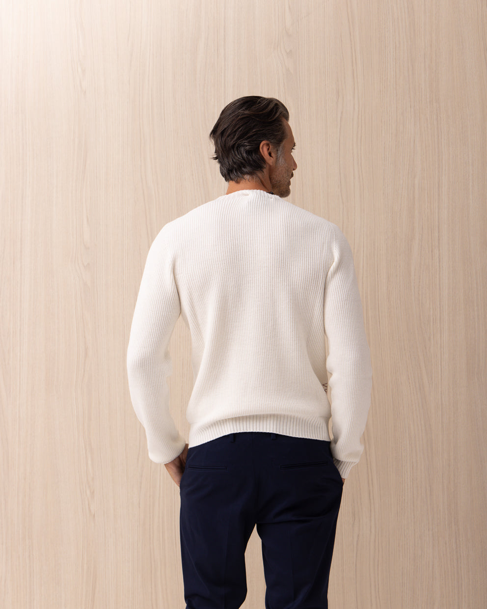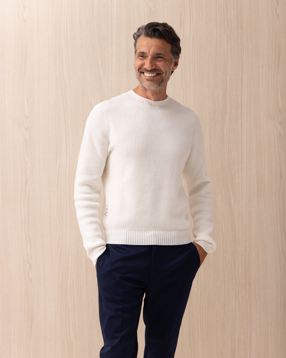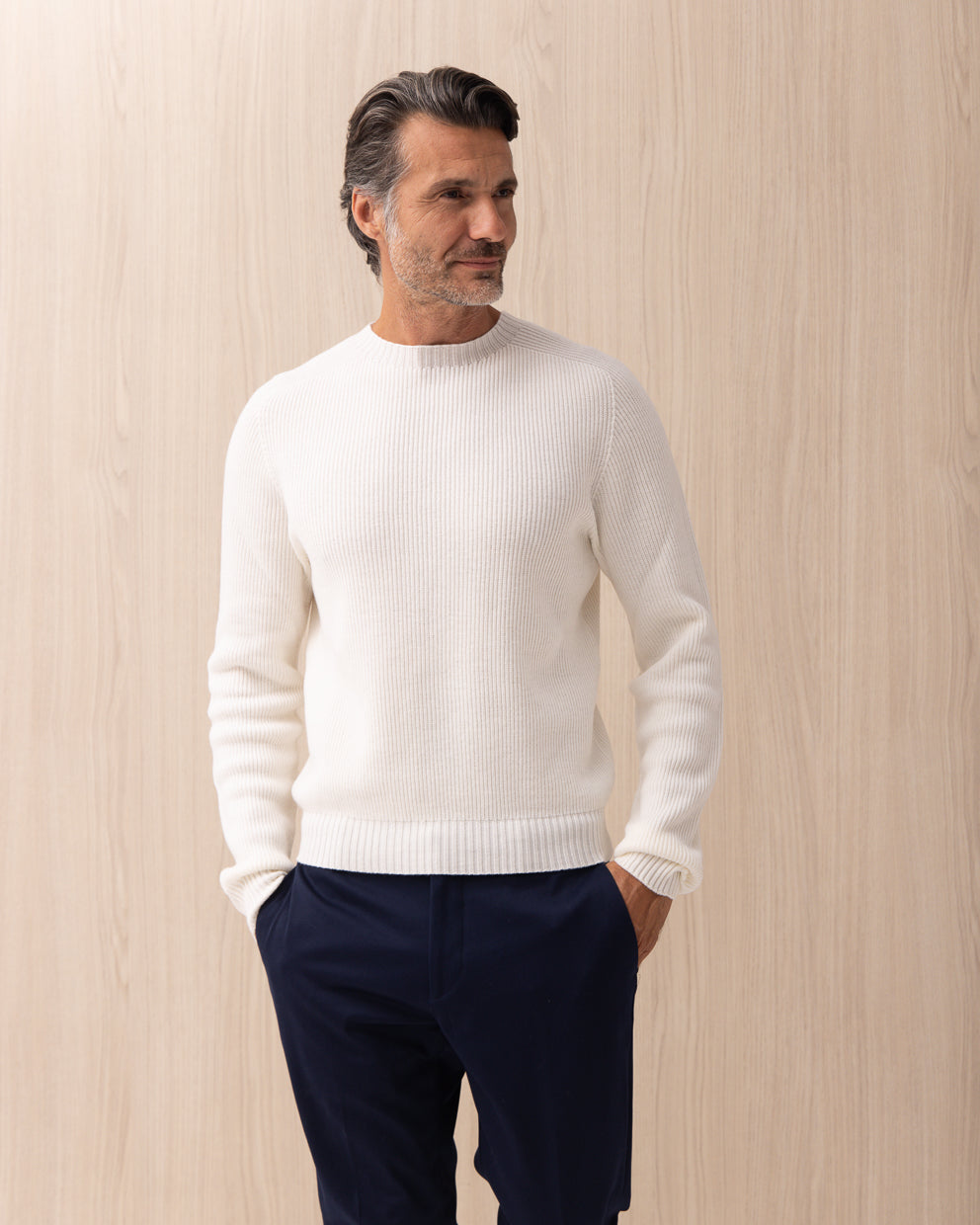 Scopri l'eleganza senza tempo del maglione AMARANTO in raffinata lana a coste. Questo capo, con il suo sobrio colore panna, è pensato per avvolgere con naturalezza e comfort, garantendo una vestibilità impeccabile grazie al regular fit. Il girocollo e le maniche lunghe ne fanno una scelta versatile, ideale per un weekend in città o un incontro formale. Immergiti nell'atmosfera intima e curata di Ulysses Boutique, dove ogni dettaglio sartoriale è studiato per esaltare il tuo stile personale.- Collezione: Autunno/Inverno 2026- Composizione: 100% Lana- Colore: Panna- Vestibilità: Regular fit- Lavaggio: Non lavare a secco, non asciugare in asciugatrice, non candeggiare, stirare a temperatura massima di 110°C