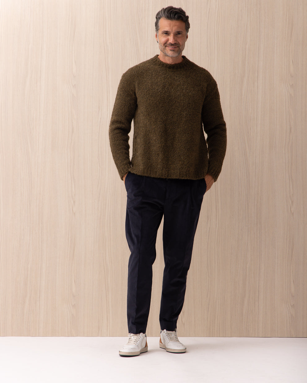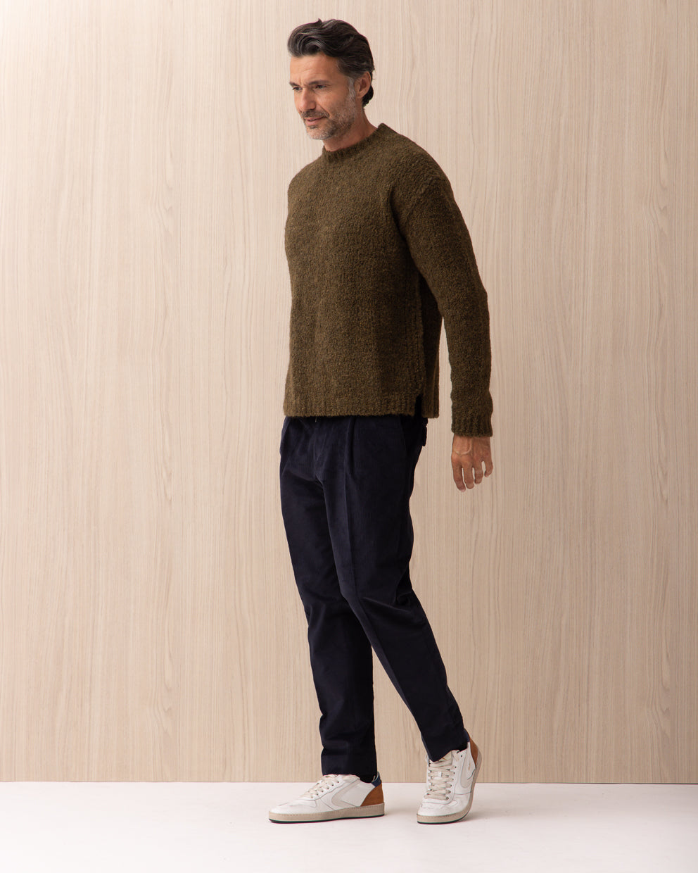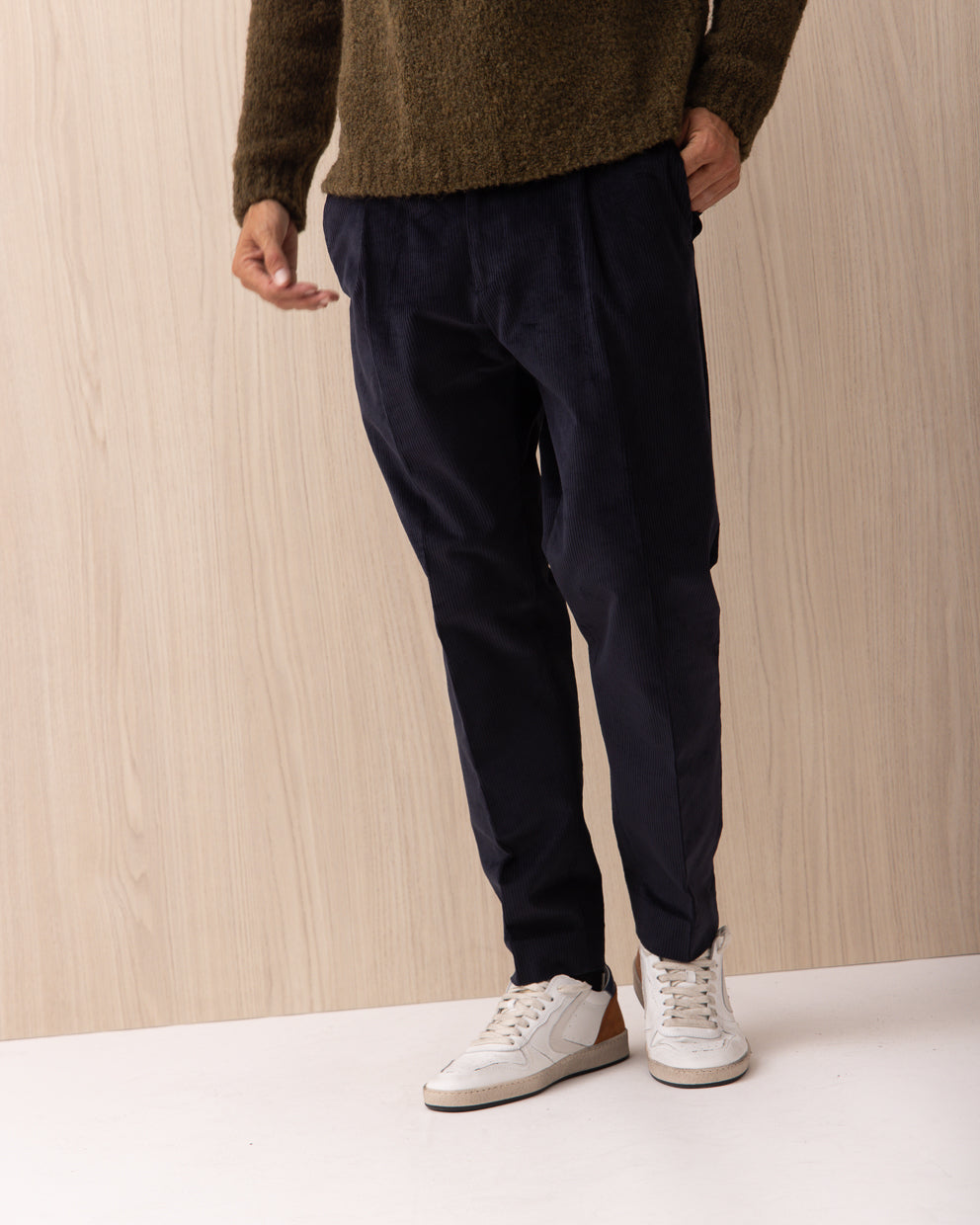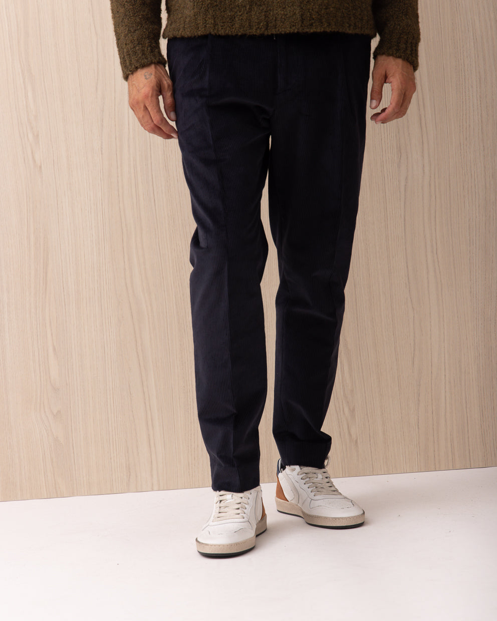 Scopri l'eleganza discreta dei pantaloni BE ABLE in velluto blu, una scelta che coniuga comfort e raffinatezza. Questi pantaloni, con la loro coulisse versatile, sono pensati per chi ama la naturalezza del movimento senza rinunciare a un tocco sartoriale. Le tasche a filo posteriori con bottone e i passanti per la cintura aggiungono funzionalità, mentre la chiusura a zip e bottone garantisce un indosso impeccabile. Ideali per un weekend in città o un incontro formale, questi pantaloni incarnano l'essenza di uno stile autentico e rilassato.- Vestibilità: Regular fit- Collezione: Autunno/Inverno 2026- Composizione: 98% Lana / 2% Elastane- Colore: Blu- Dettagli: Coulisse, tasche a filo posteriori con bottone, passanti per la cintura, chiusura a zip e bottone
