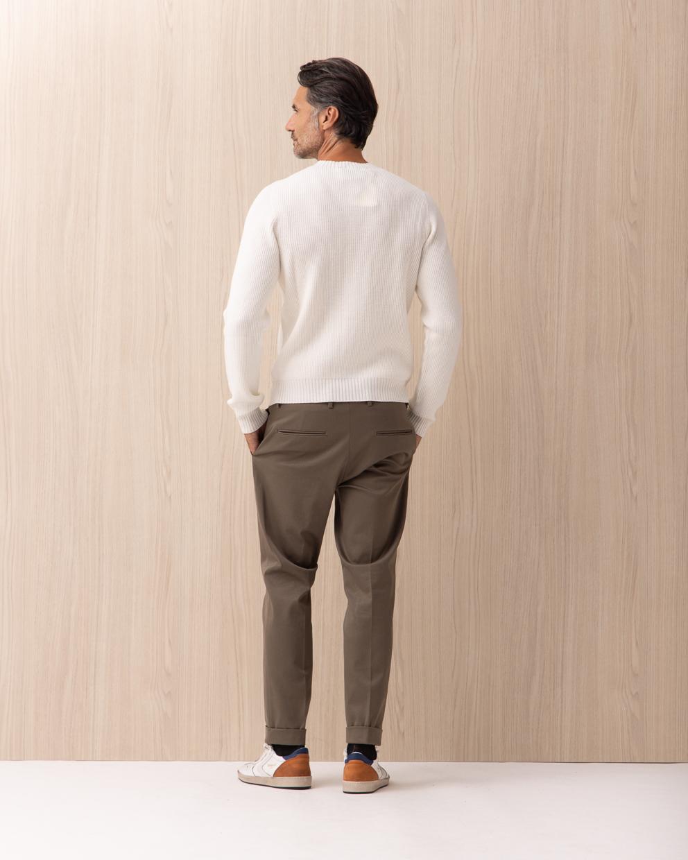 Scopri l'eleganza senza tempo dei pantaloni BE ABLE, un capo che incarna l'armonia tra stile e comfort. Realizzati in gabardina stretch tinta pezza, questi pantaloni chino slim fit sono pensati per l'uomo che apprezza il lusso discreto e la cura sartoriale. Le tasche a filo posteriori e i passanti per la cintura aggiungono un tocco di raffinatezza, mentre la chiusura a zip e bottoni garantisce una vestibilità impeccabile. Indossali per un weekend in città o un incontro formale: la loro versatilità li rende il complemento ideale di ogni guardaroba autunnale.