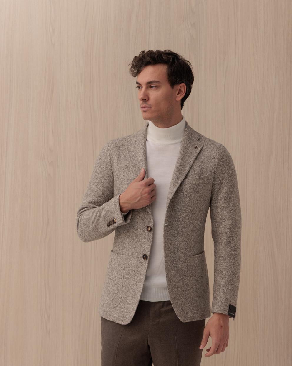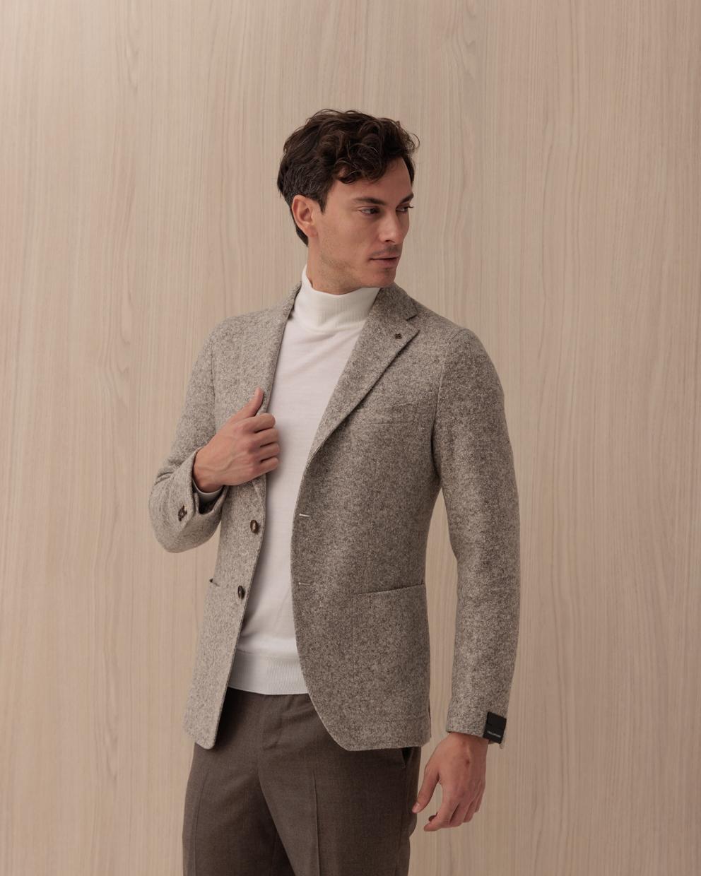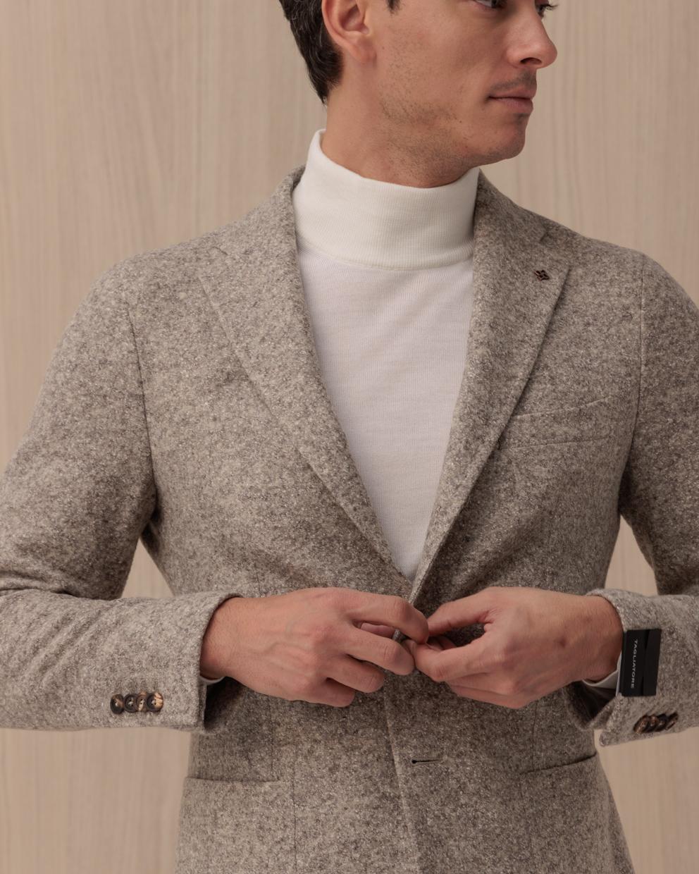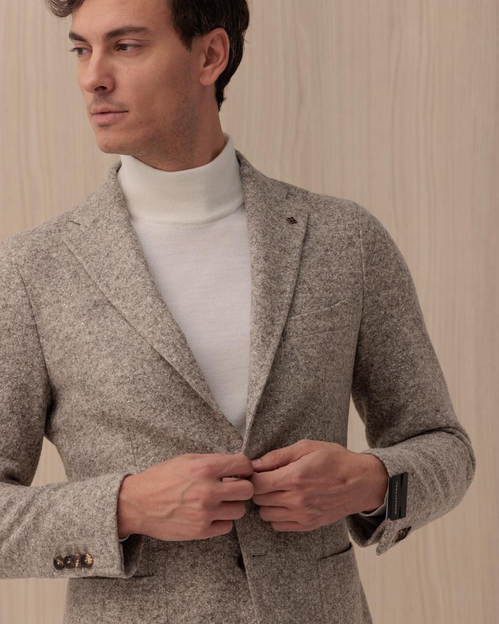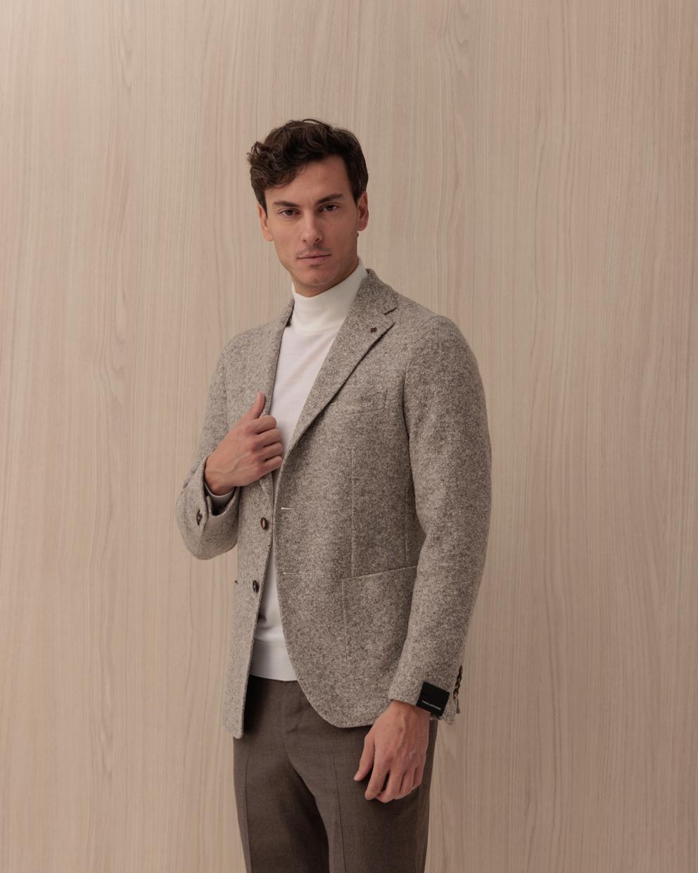 Scopri la giacca monopetto TAGLIATORE, un pezzo d'eleganza senza tempo che unisce la morbidezza della lana alla delicatezza della seta. Questo capo, dal colore beige raffinato, si distingue per la sua chiusura a due bottoni e le ampie tasche a toppa, conferendo un tocco di classe a qualsiasi guardaroba. Ideale per un weekend in città o un incontro formale, offre comfort e stile impeccabile grazie alla sua vestibilità regular fit. - Chiusura a due bottoni - Due ampie tasche a toppa - Due taschini interni - Bottoni sui polsini - Due spacchi sul retro