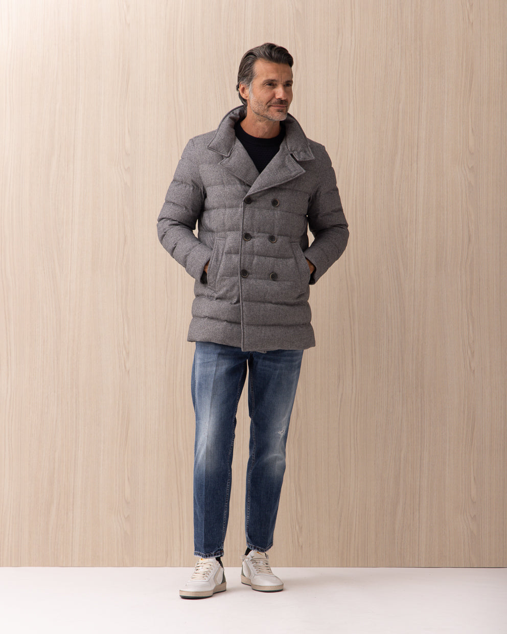 Giubbotto Herno Grigio in Misto Seta e Cashmere Doppiopetto
