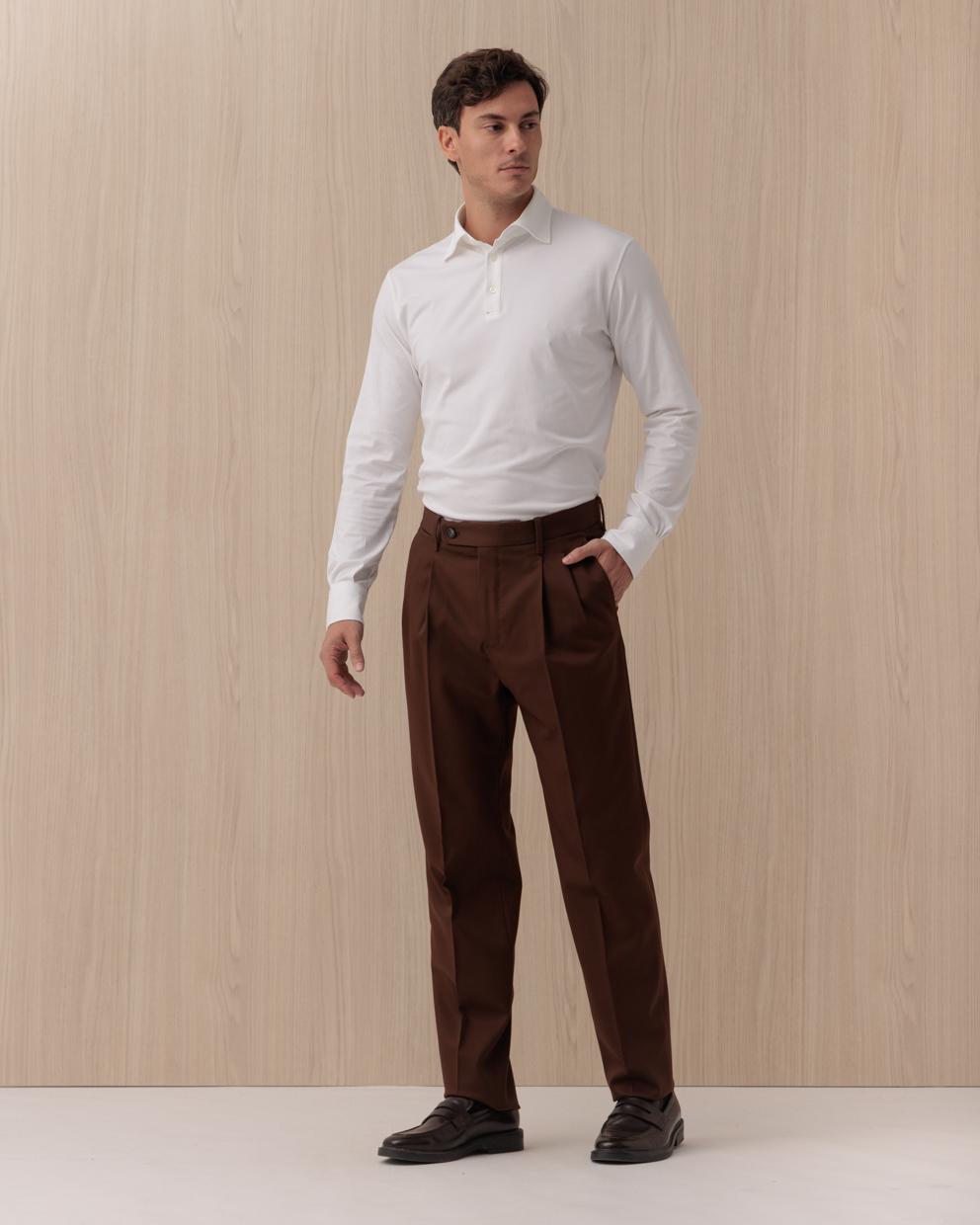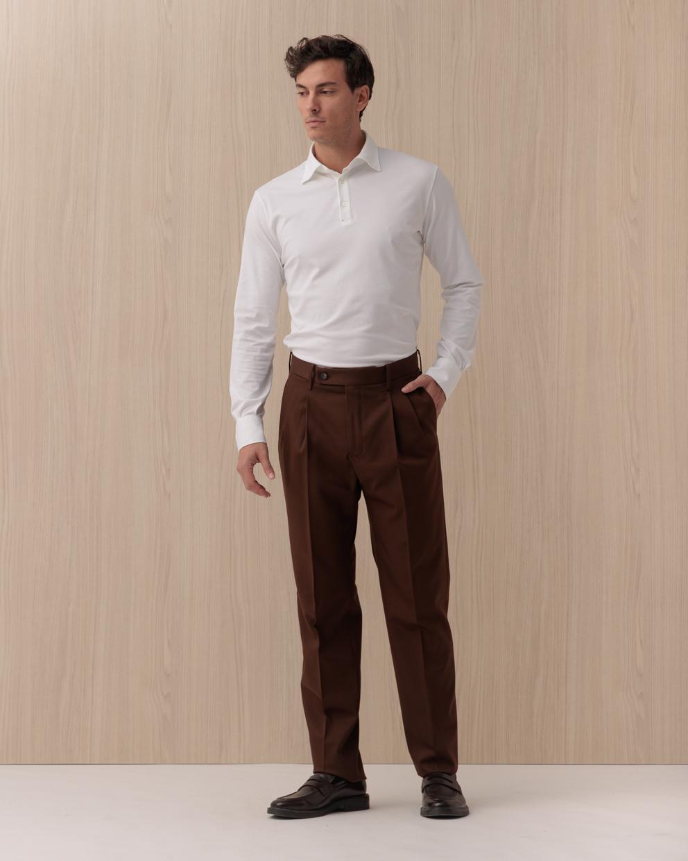 Scopri l'eleganza senza tempo dei pantaloni INCOTEX, un capo che coniuga sapientemente comfort e stile. Realizzati in pregiata lana al 100%, questi pantaloni con doppia pences offrono una vestibilità regular fit che li rende perfetti per ogni occasione, dal weekend in città a un incontro formale. La chiusura con zip e bottone, le tasche laterali oblique e il taschino, insieme alle due tasche posteriori a filetto con bottone asolato, esprimono un design raffinato e funzionale. Ideali per chi cerca un capo sartoriale con un tocco di calore e accoglienza, tipico della collezione Autunno/Inverno 2026. - Chiusura con zip e bottone - Tasche laterali oblique e taschino - Due tasche posteriori a filetto con bottone