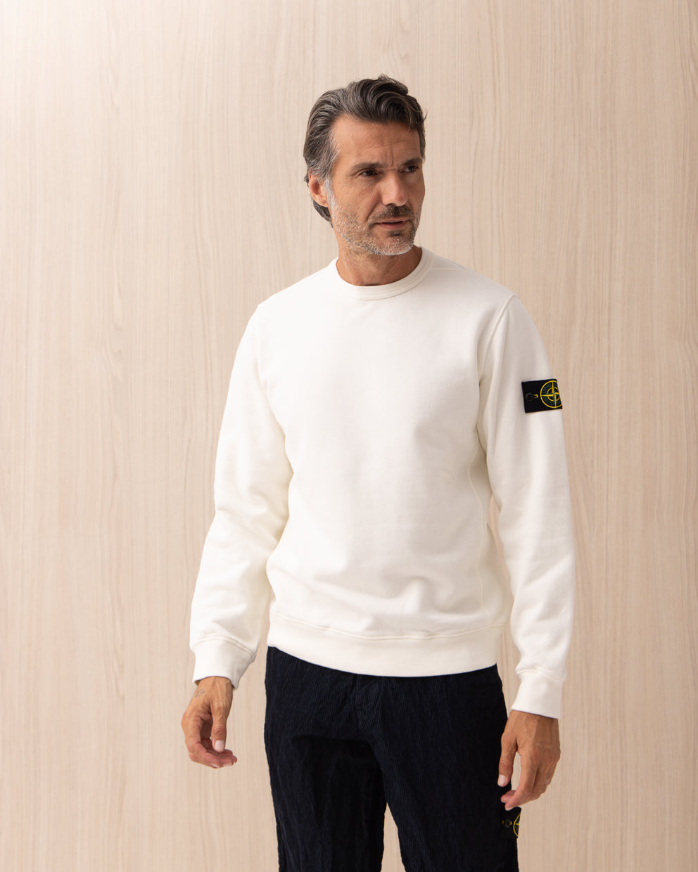 Scopri l'eleganza naturale della felpa girocollo STONE ISLAND. Realizzata in cotone biologico garzato, questo capo abbina la tradizione sartoriale a uno stile moderno e raffinato. La tintura in capo dona una profondità cromatica unica, mentre gli inserti a costine sulle spalle e sui fianchi conferiscono un tocco distintivo e armonioso. Perfetta per una passeggiata in città o un incontro informale, questa felpa si distingue per il badge iconico sulla manica sinistra, simbolo di autenticità e gusto per i dettagli.- Scollo a costine- Inserti triangolari a costine su spalle e fianchi- Badge Stone Island sulla manica- Polsini e fascia inferiore elasticizzati- Modello tinto in capo- Vestibilità: Regular fit- Collezione: Autunno/Inverno 2026- Composizione: 100% Cotone- Colore: Bianco