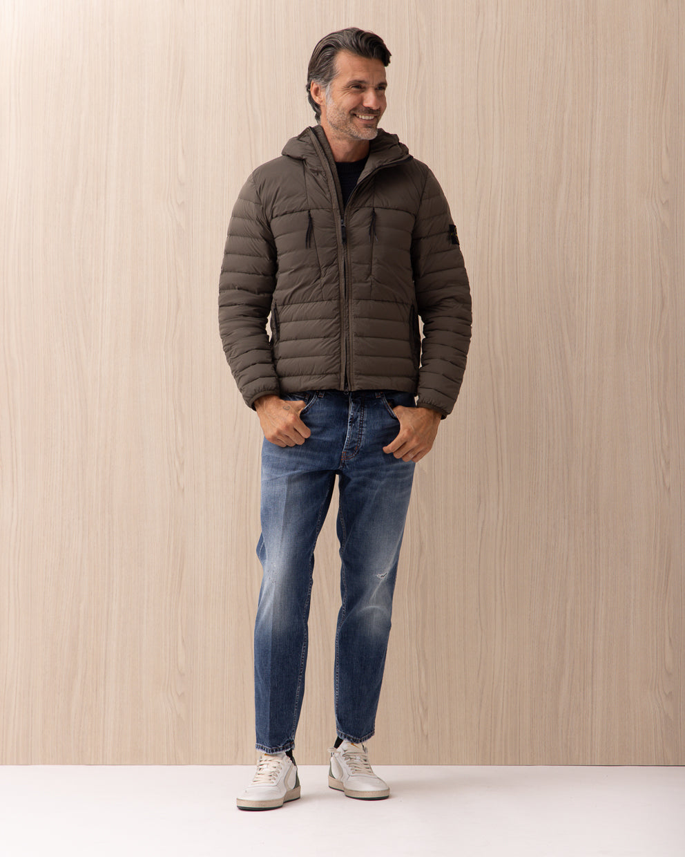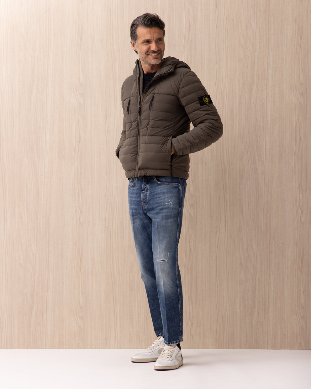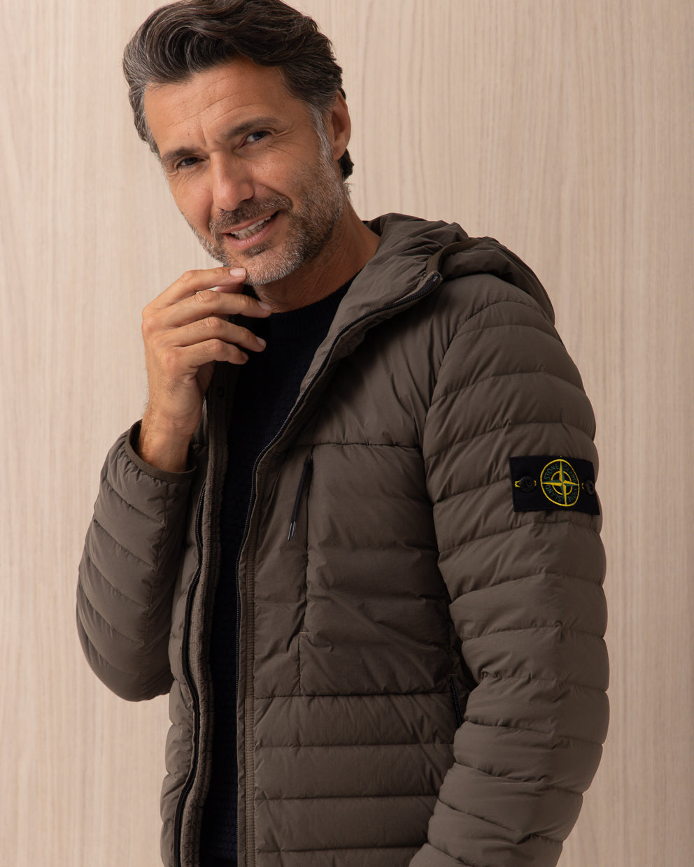 Scopri l'eleganza discreta del giubbotto Stone Island, un capo iconico che fonde innovazione tessile e stile senza tempo. Realizzato in un leggero tessuto elasticizzato con nylon riciclato, questo piumino corto con cappuccio offre un comfort impeccabile e una vestibilità regolare. Ideale per le stagioni fredde, si distingue per l'imbottitura con piume pregiate e il trattamento antigoccia, perfetto per un weekend in città o un incontro formale.- Cappuccio imbottito con bordo in fettuccia elasticizzata- Tasche sul petto e frontali con zip invisibile- Badge Stone Island sulla manica sinistra- Finiture in fettuccia elasticizzata sui polsini- Orlo con coulisse- Zip a doppio cursore nascosta con automatico sulla finta interna- Altezza modello: 188 cm, taglia M- Vestibilità: Regular fit- Collezione: Autunno/Inverno 2026- Composizione: 86% Poliammide / 14% Elastane, Imbottitura: 90% Piumino d'anatra / 10% Piuma d'anatra- Colore: Verde