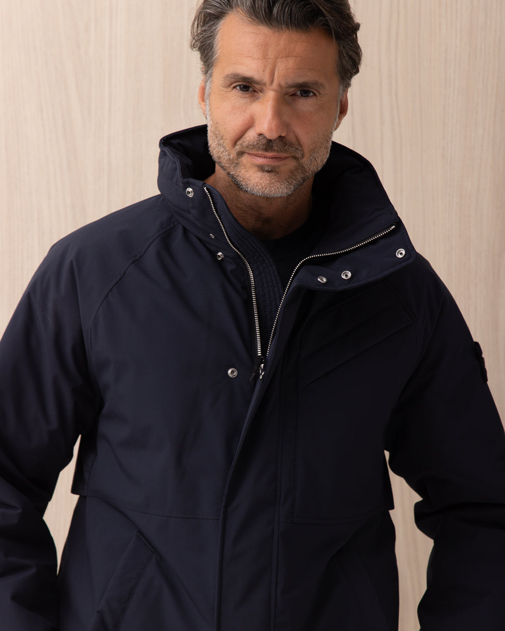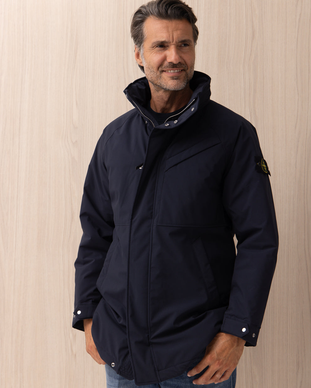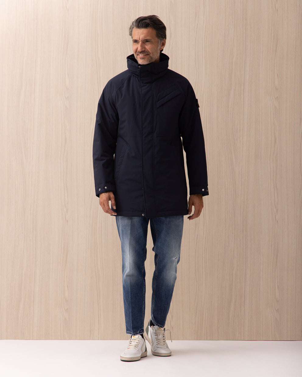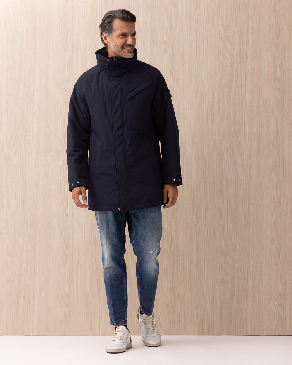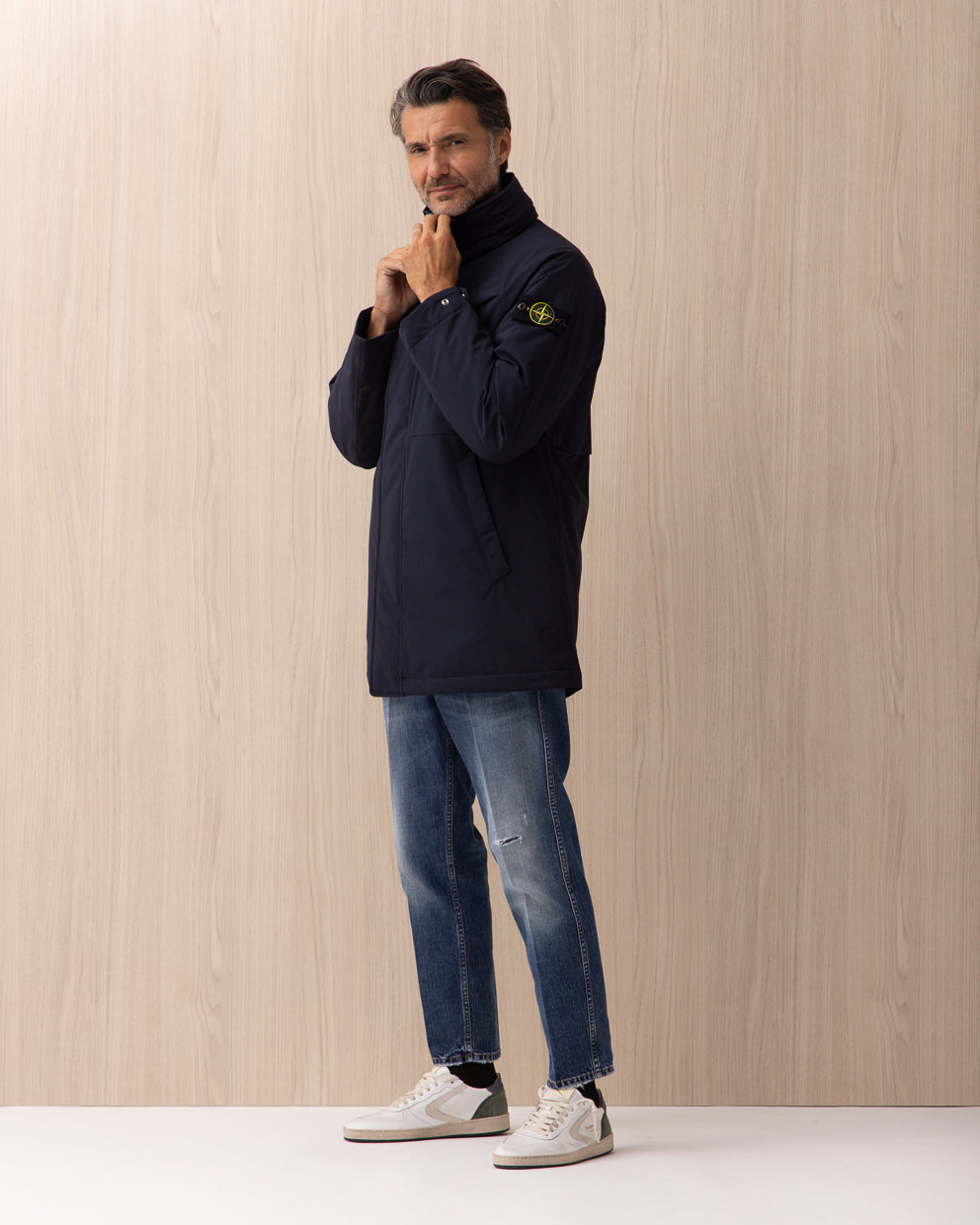 Scopri l'eleganza discreta del giubbotto lungo Stone Island in blu, un capo essenziale per l'autunno/inverno 2026. Confezionato in un raffinato materiale tecnico a due strati, offre un comfort termico impareggiabile grazie all'imbottitura PrimaLoft® Gold P.U.R.E™. Questo capo rappresenta l'incontro tra innovazione e stile sartoriale, perfetto per un weekend in città o un incontro formale.- Materiale tecnico con colonna d'acqua da 8000 mm- Tessuto e.dye® Waterless Color System™ per una colorazione sostenibile- Imbottitura PrimaLoft® Gold P.U.R.E™, 100% fibre riciclate- Colletto rigido con cappuccio a scomparsa e coulisse- Tasche oblique e tasca interna con logo Stone Island Compass- Badge Stone Island sulla manica sinistra- Zip a doppio cursore sotto finta con automatici- Vestibilità: Regular fit- Colore: Blu- Composizione: 92% Poliestere, 8% Elastane