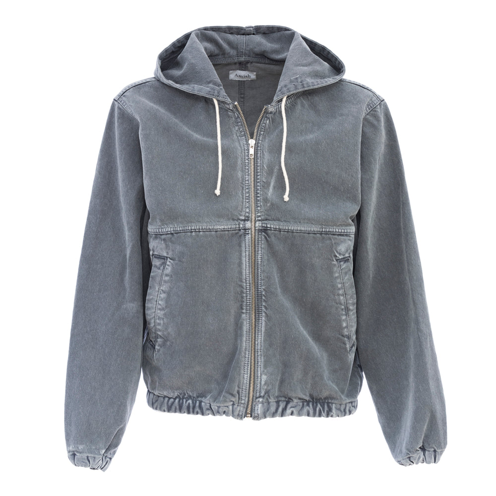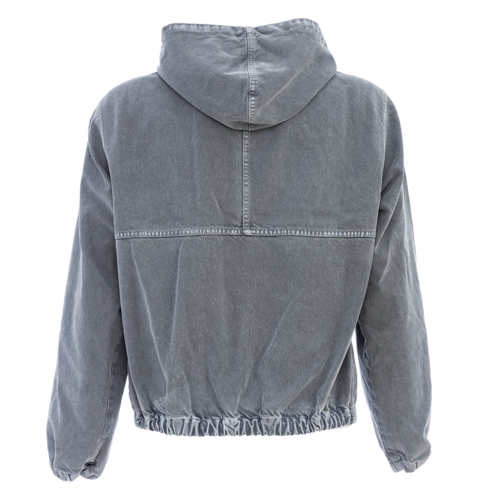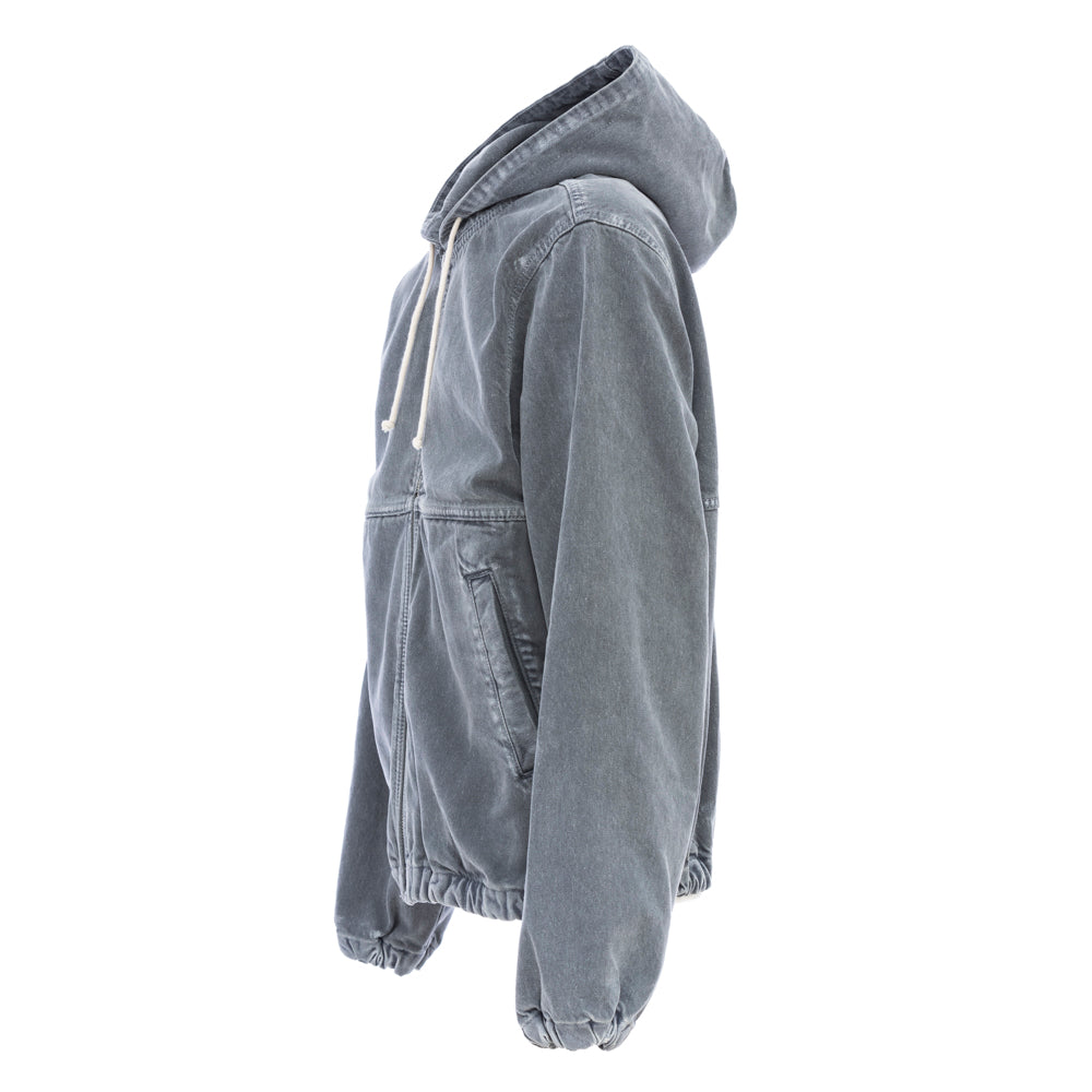 Full zip jacket with hood and drawstring, two front pockets. Cuffs and bottom with elastic band. Item totally treated with an old washed effect.