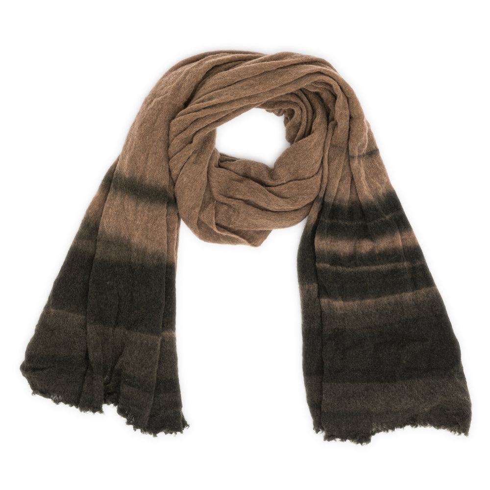 Bi-color scarf with shaded effect and fringed edges in cashmere.