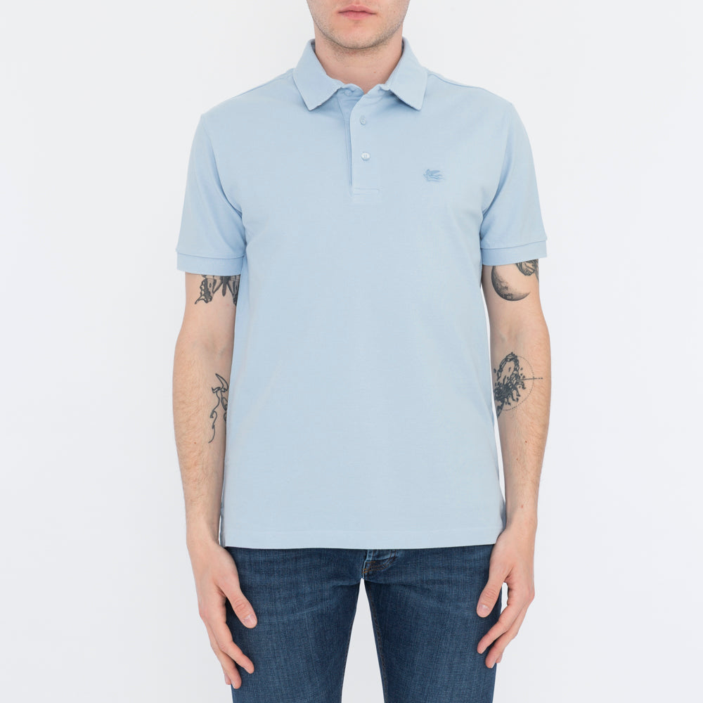 Polo Manica Corta in piquet di cotone. Colletto di dimensione leggermente più piccola del tradizionale e sottocollo con stampa a contrasto fantasia fiori. Chiusura a tre bottoncini. Logo del pegaso, ricamato frontalmente sul lato sinistro. Polsini con tessuto a costine. Prodotto Made in Italy.