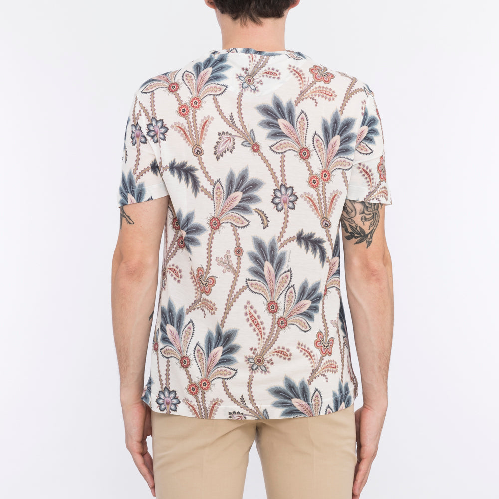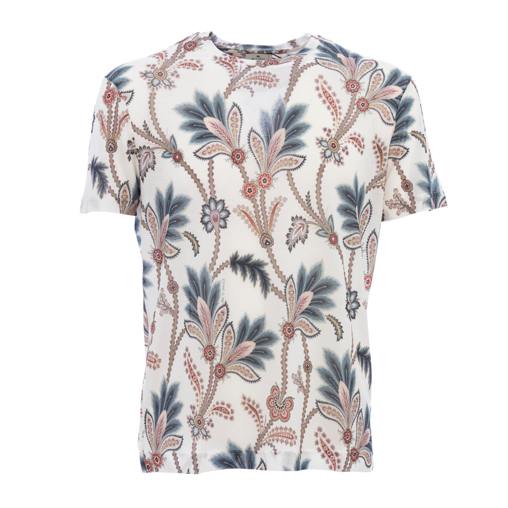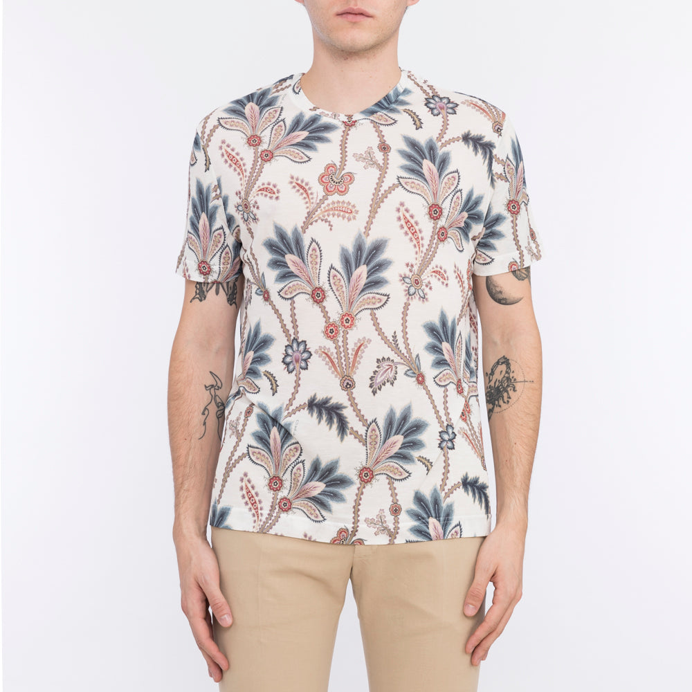 Made of pure cotton, this t-shirt is embellished with a refined all-over floral paisley print. The Etro logo and Pegasus, embroidered ton-sur-ton on the chest, add a touch of elegance. Perfect for a casual look with a touch of sophistication.