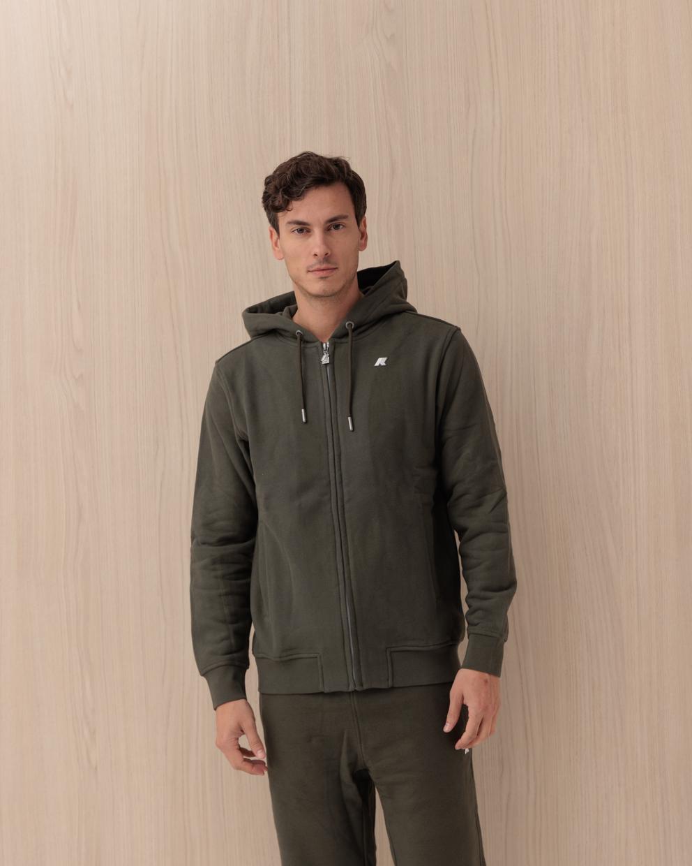 Felpa con Cappuccio K-WAY Verde in Morbido Cotone