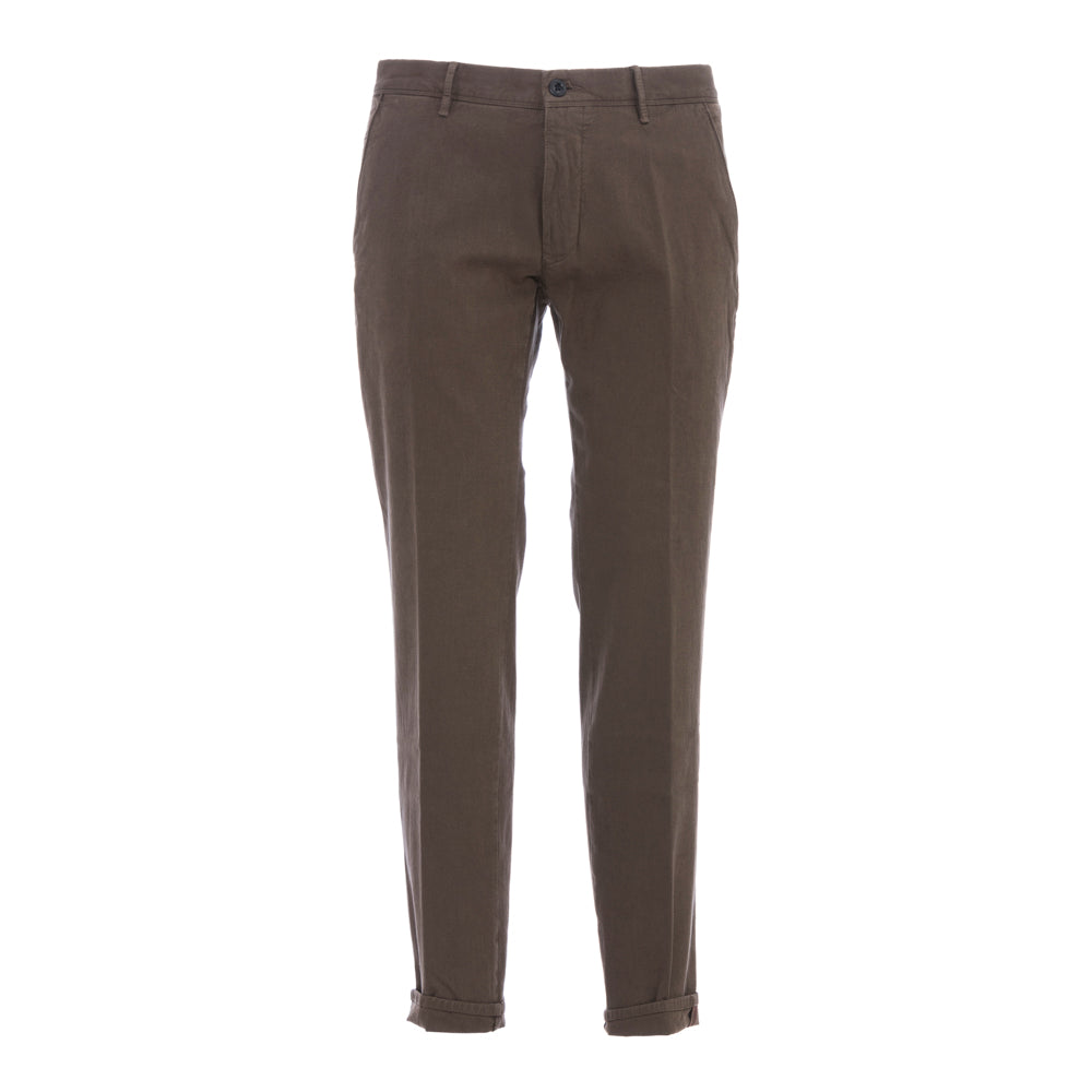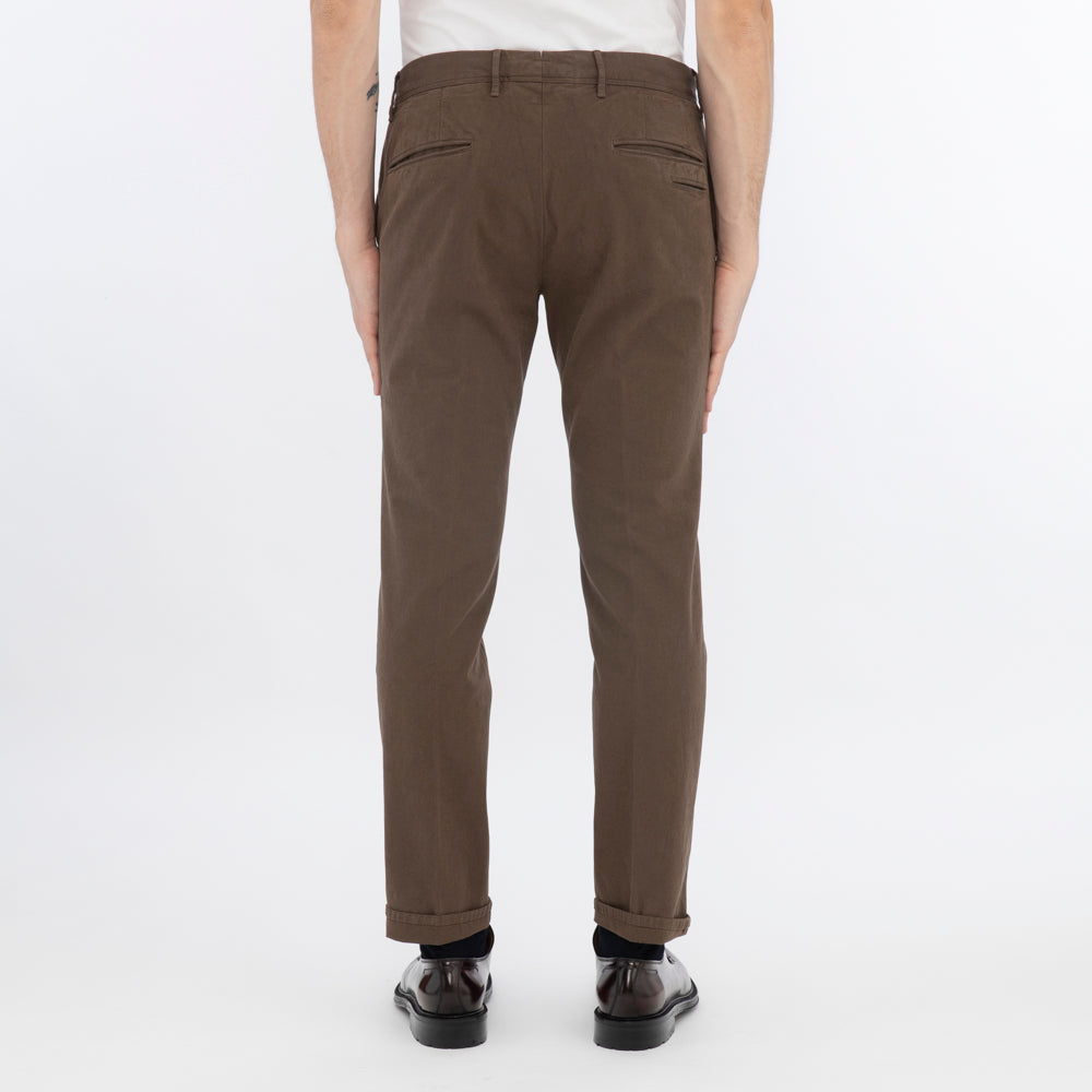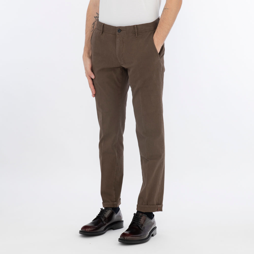 Stretch cotton trousers. There are two front American pockets with coin pocket and two welt pockets.
