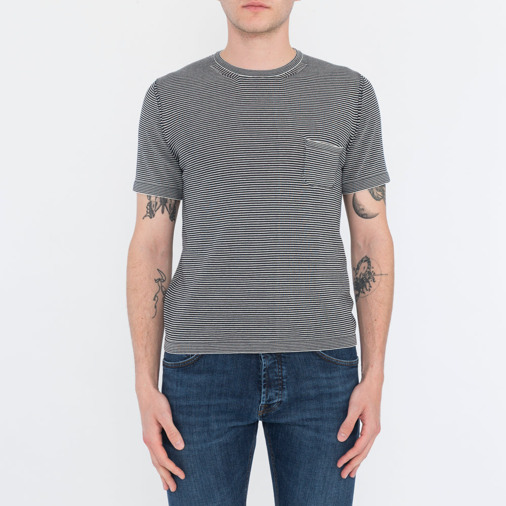 T-shirt manica corta con collo, polsini e fondo a coste, taschino sul petto.