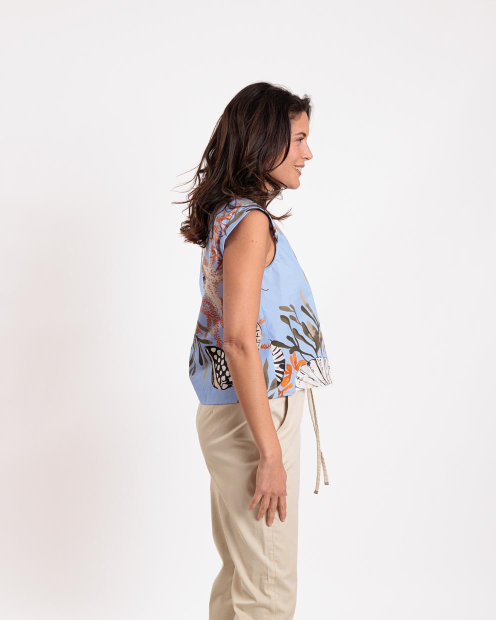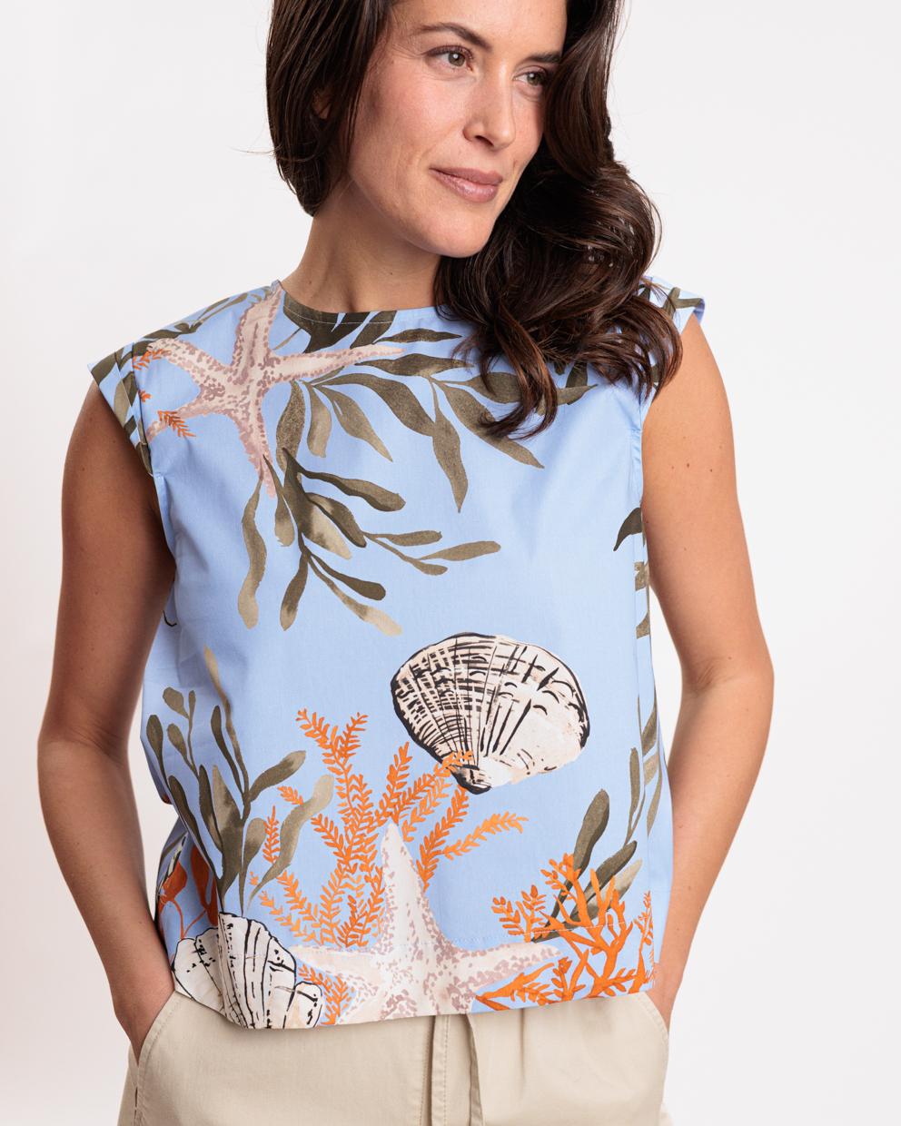 The light blue color of this top evokes serene skies and relaxing moments in the sun. Perfect for long Spring/Summer 2026 days, it easily matches all your daily looks. Made from soft cotton, this MARELLA sleeveless top offers a comfortable and lightweight fit, ideal for warm days. Its pattern adds a touch of vivacity that won't go unnoticed. As comfortable as expected, more beautiful than hoped for.