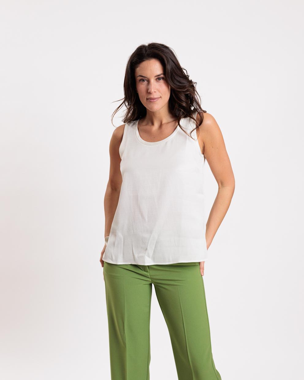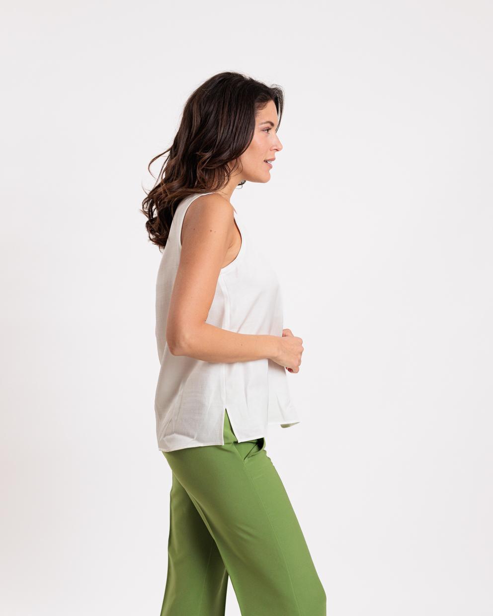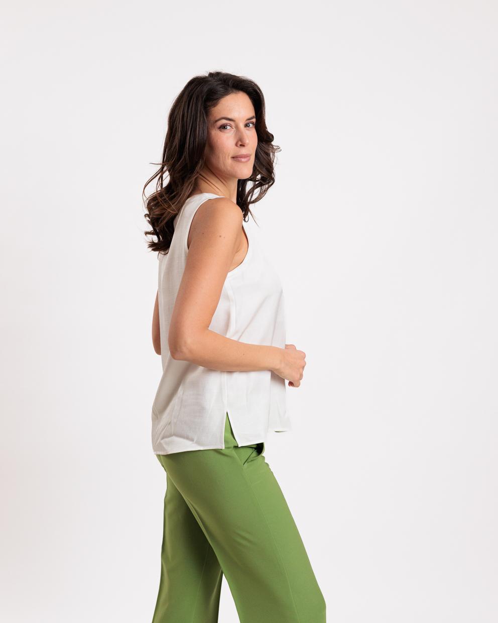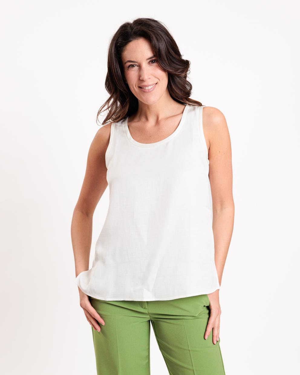 White viscose and linen top