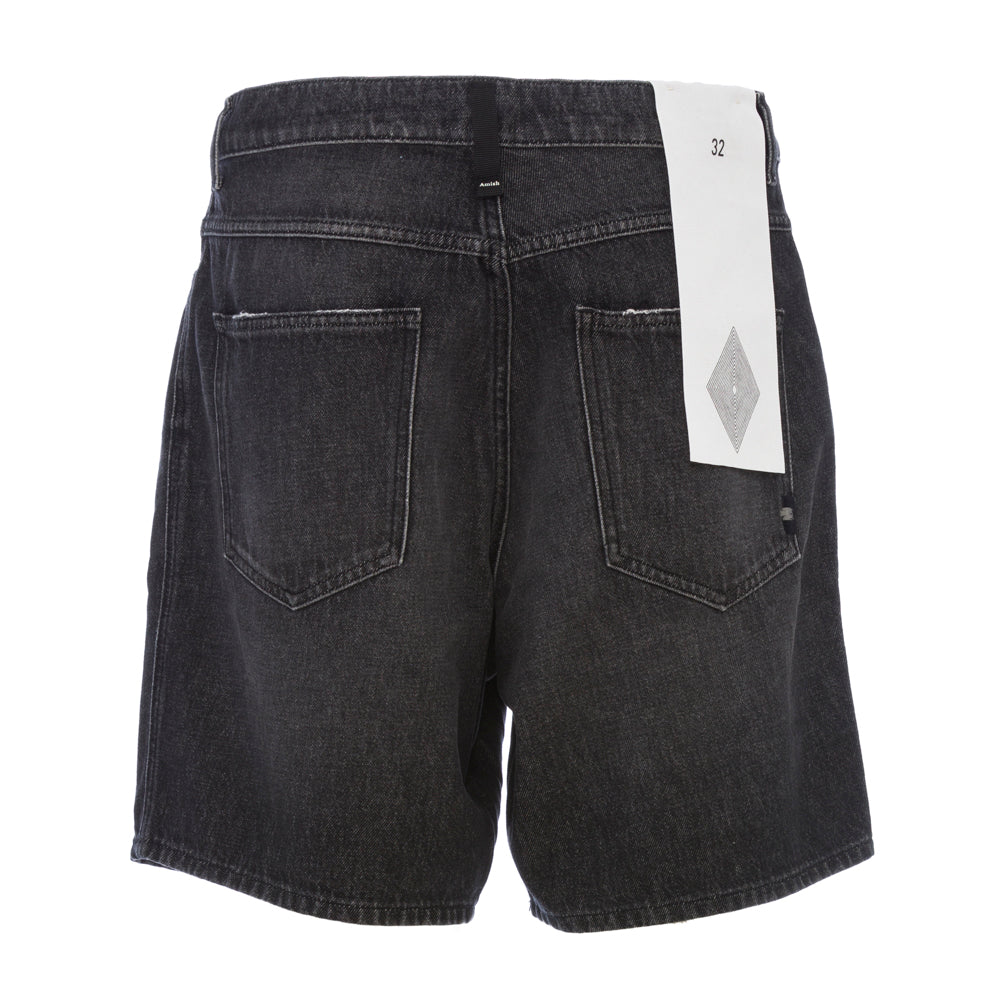 Black Bermuda jeans, zip and button closure, two front pockets and two on the back.