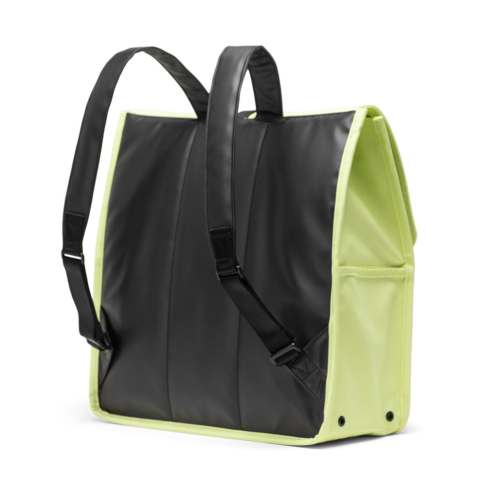 Rivestimento TPE opaco, custodia per laptop da 13"/14", cinturino in gomma con chiusura magnetica e fibbie ad ardiglione in metallo, spallacci sottili imbottiti, custodia portaoggetti nascosta, tasca per bottiglia d'acqua.