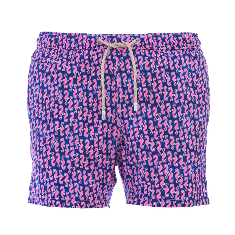 Introducing Comfort Light, the perfect swimwear companion designed for both water activities and casual outings. With its relaxed fit and streamlined design, this swimwear transitions seamlessly from beach to bar. The distinctive feature of this model is the comfortable fit made of mechanical stretch fabric, a lightweight and quick-drying fabric: style combined with comfort and practicality. It features two side pockets, a front pocket with velcro closure, elasticated waist with drawstring and logoed ends, internal mesh lining, back pocket with button closure, logoed eyelets on the back for water drainage, rear label with MC2 writing. Saint Barth logo.