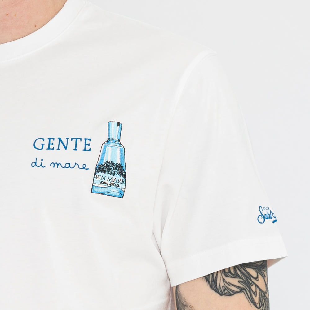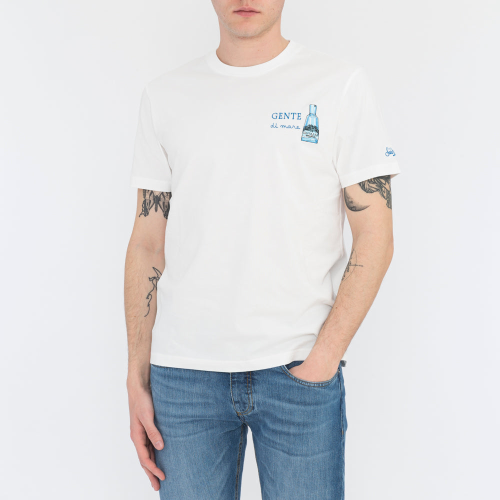 Short sleeve T-shirt with "Gente di mare" embroidery, ribbed collar.