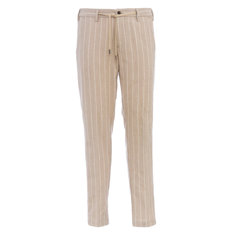 Beige Millerighe Trousers With Drawstring