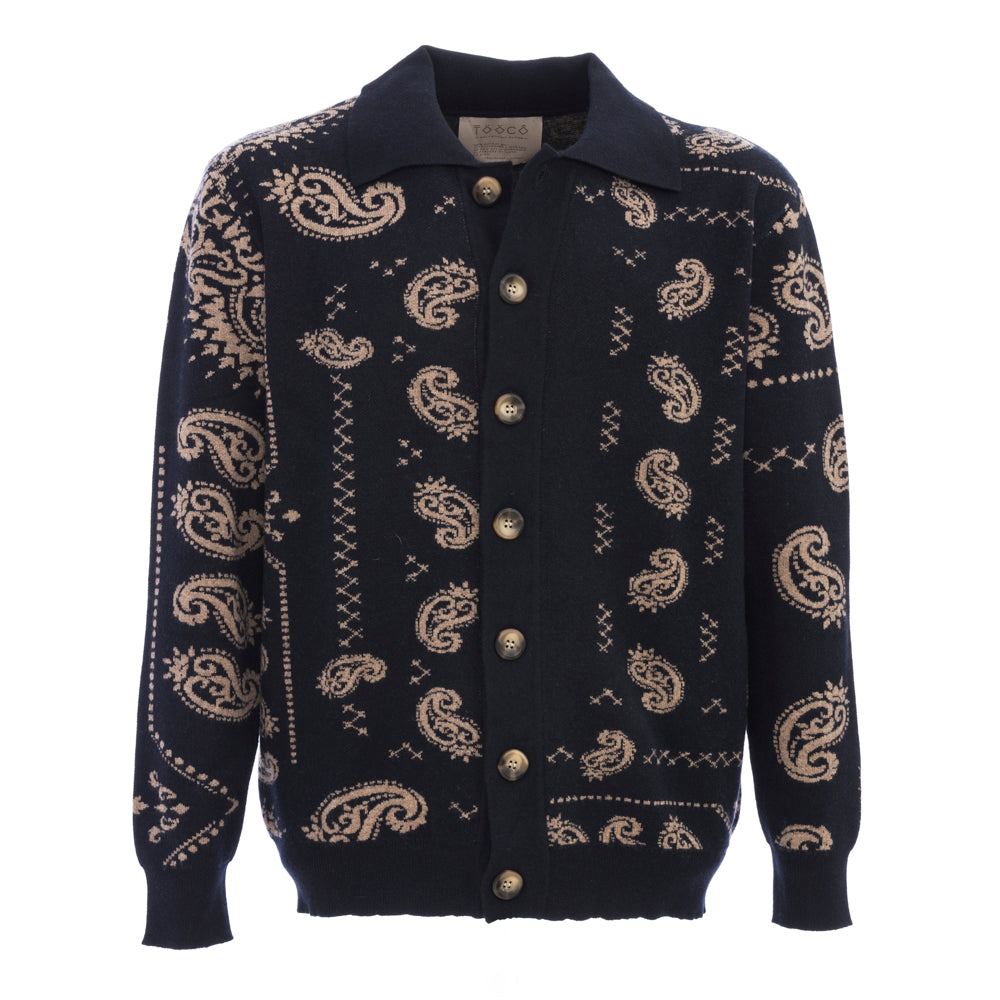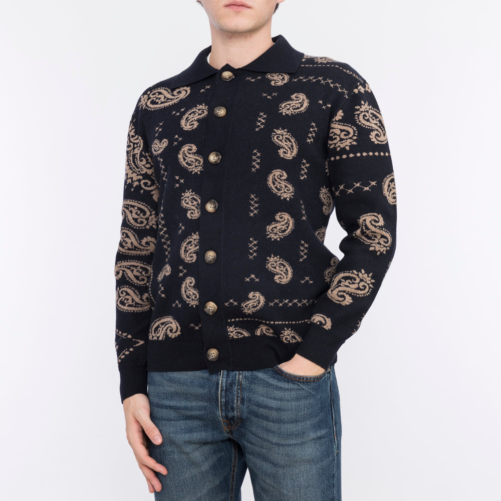 Dana navy cardigan sweater made of cashmere blend with wide collar, button closure and double side pocket. The multi-ethnic fantasies and vibes of the brand are ready to accompany me even during the coldest season.