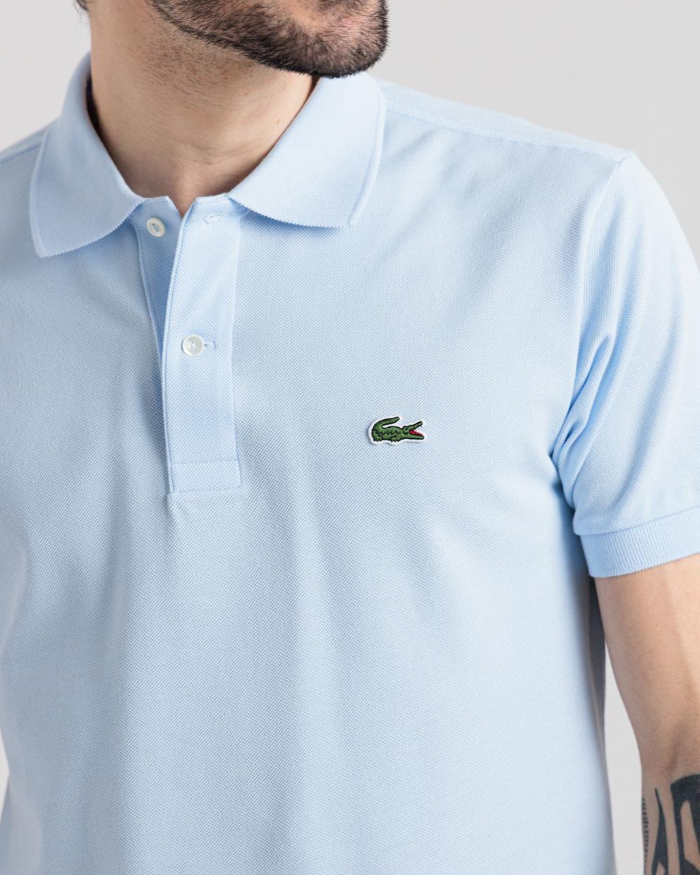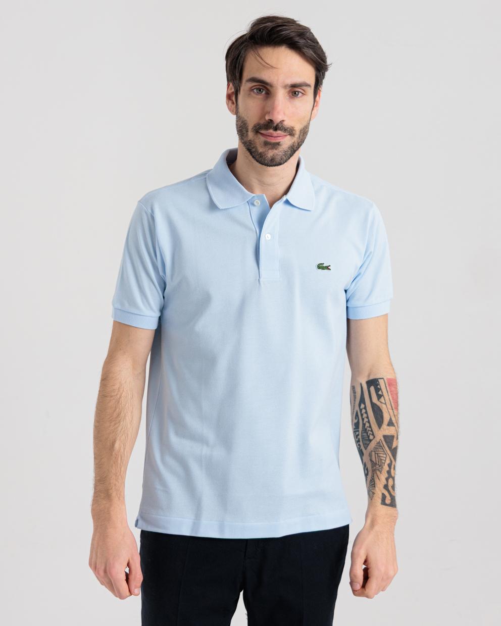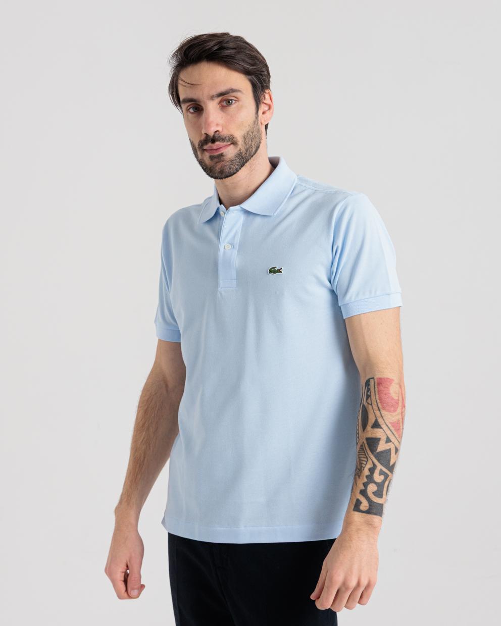 Polo manica corta azzurro in cotone piquet