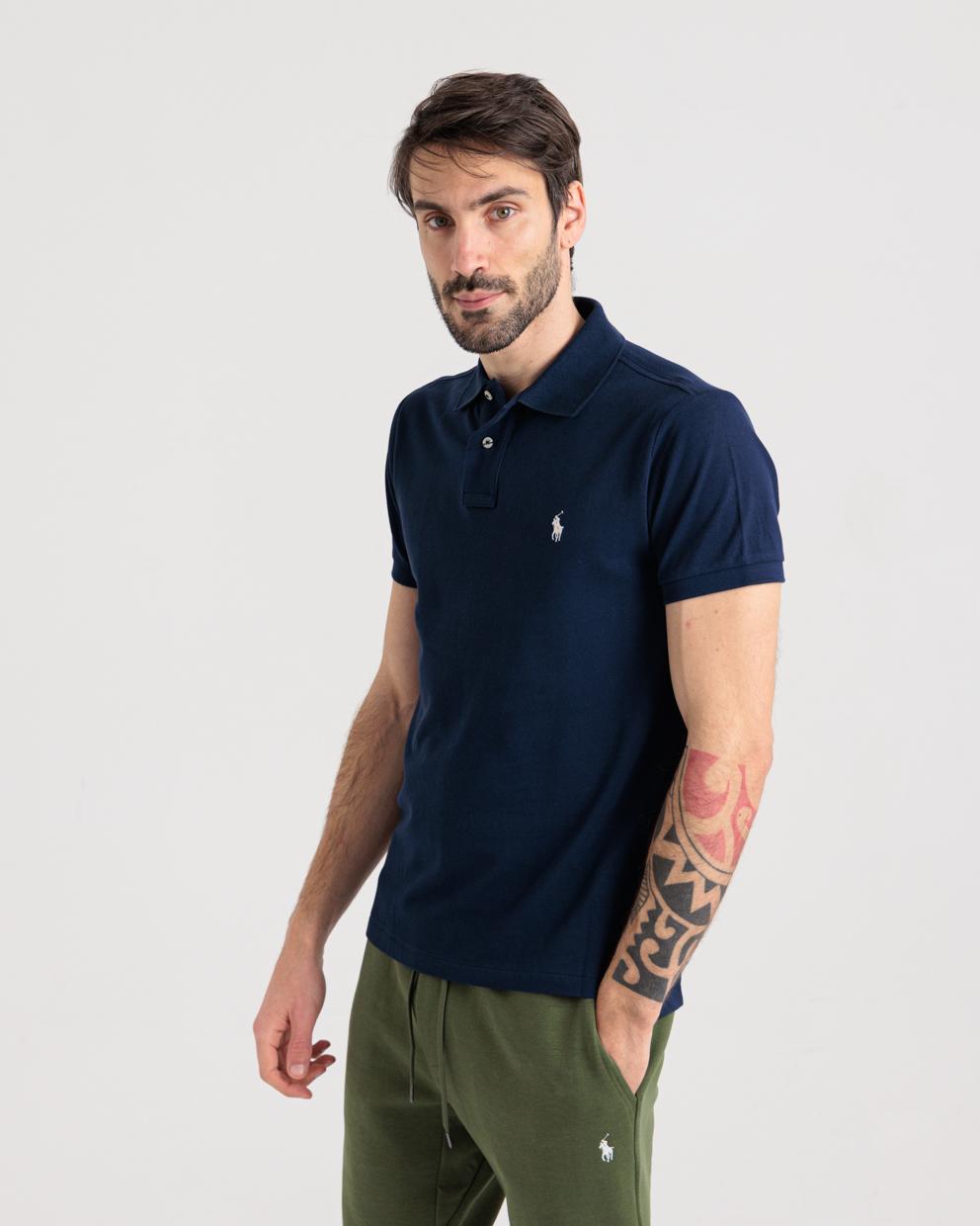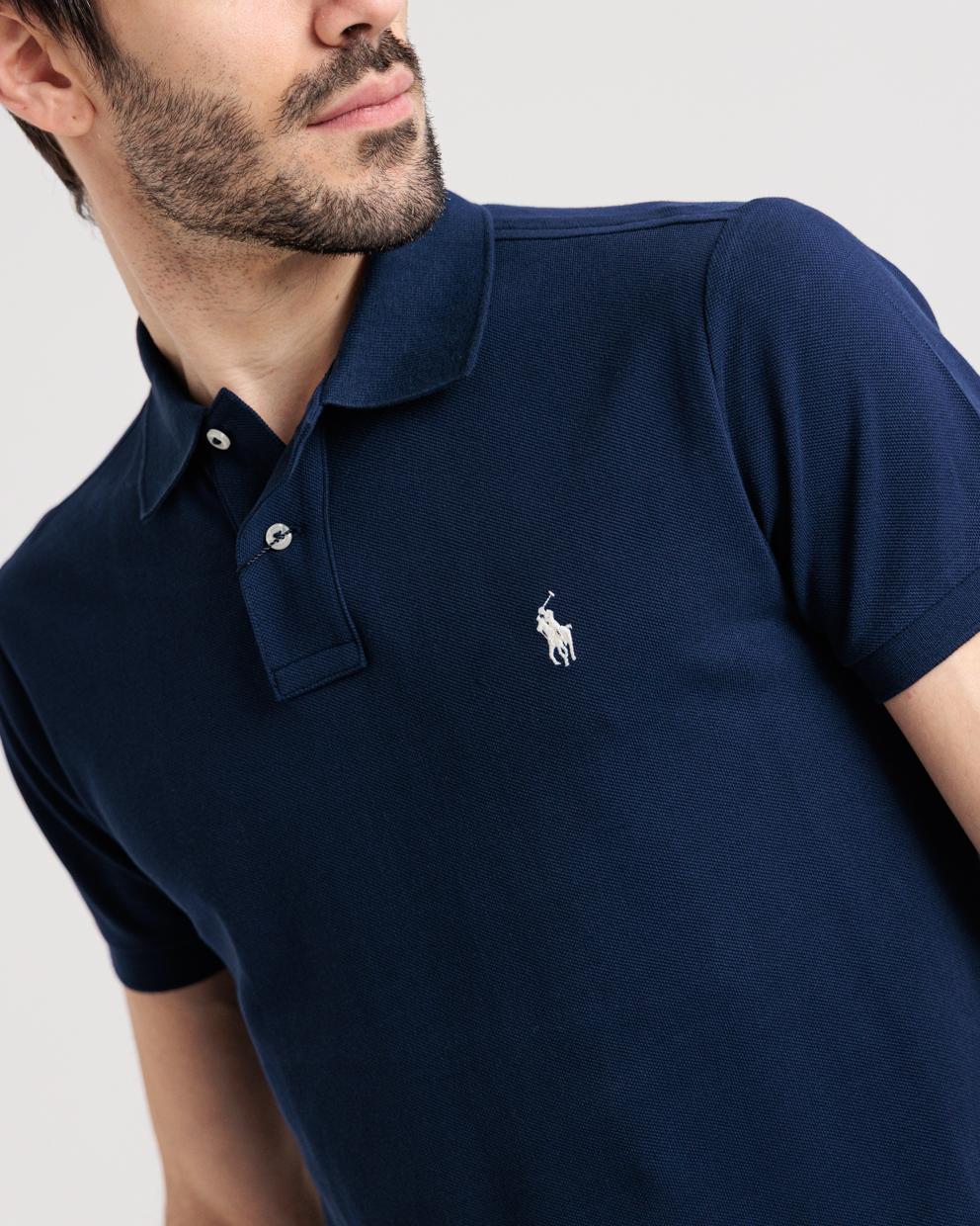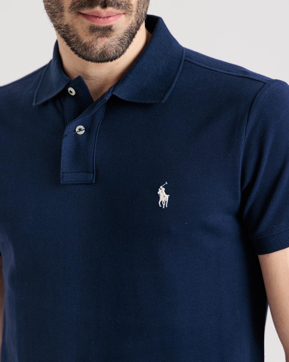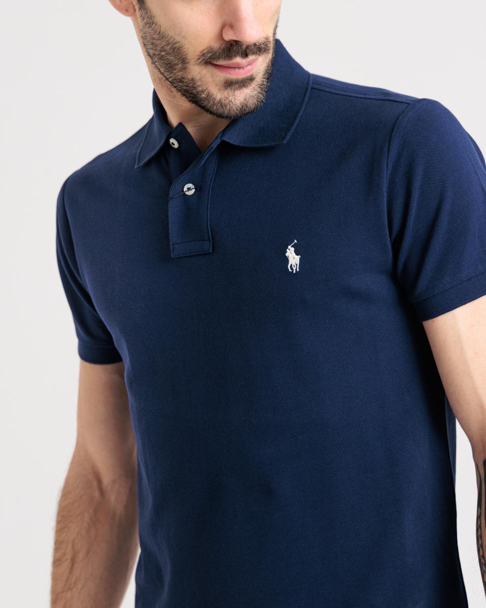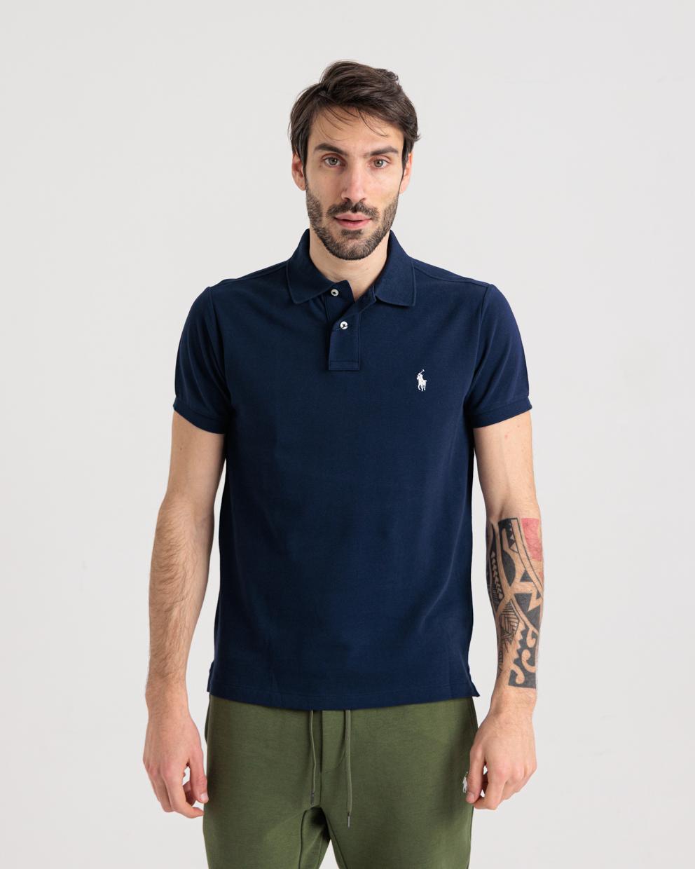 Polo manica corta blu in custom fit
