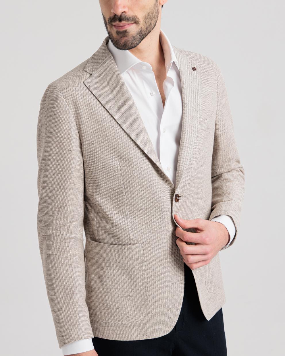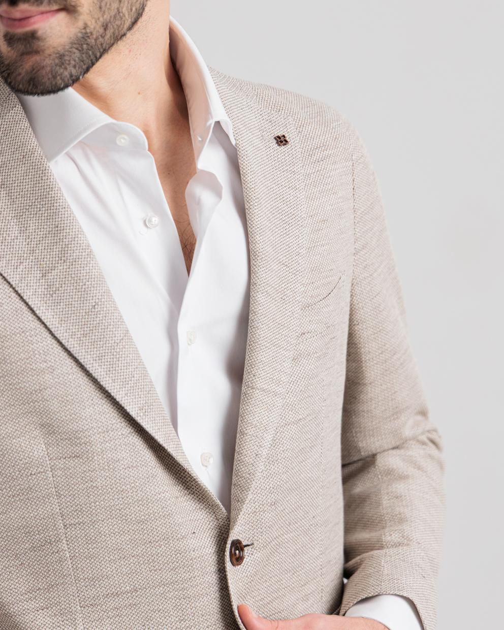 - Composizione: 59% lino, 41% cotone Il modello è alto185cm e indossa la 48