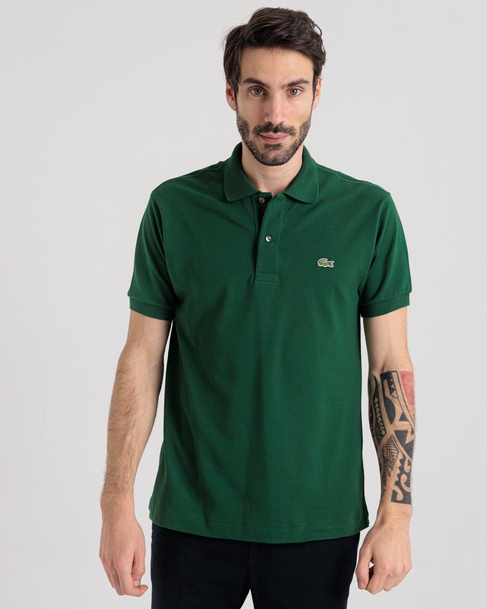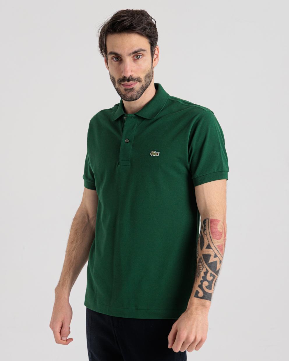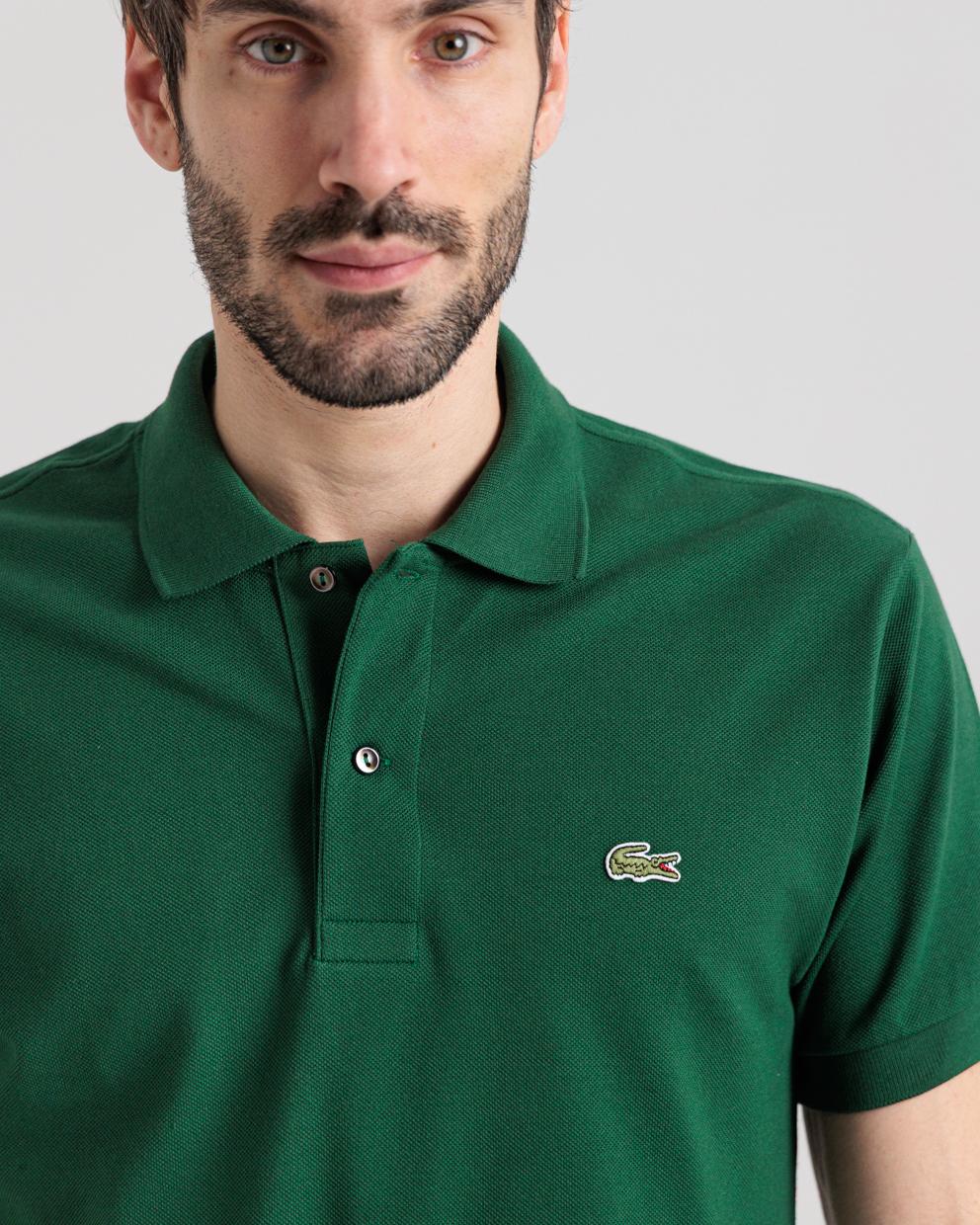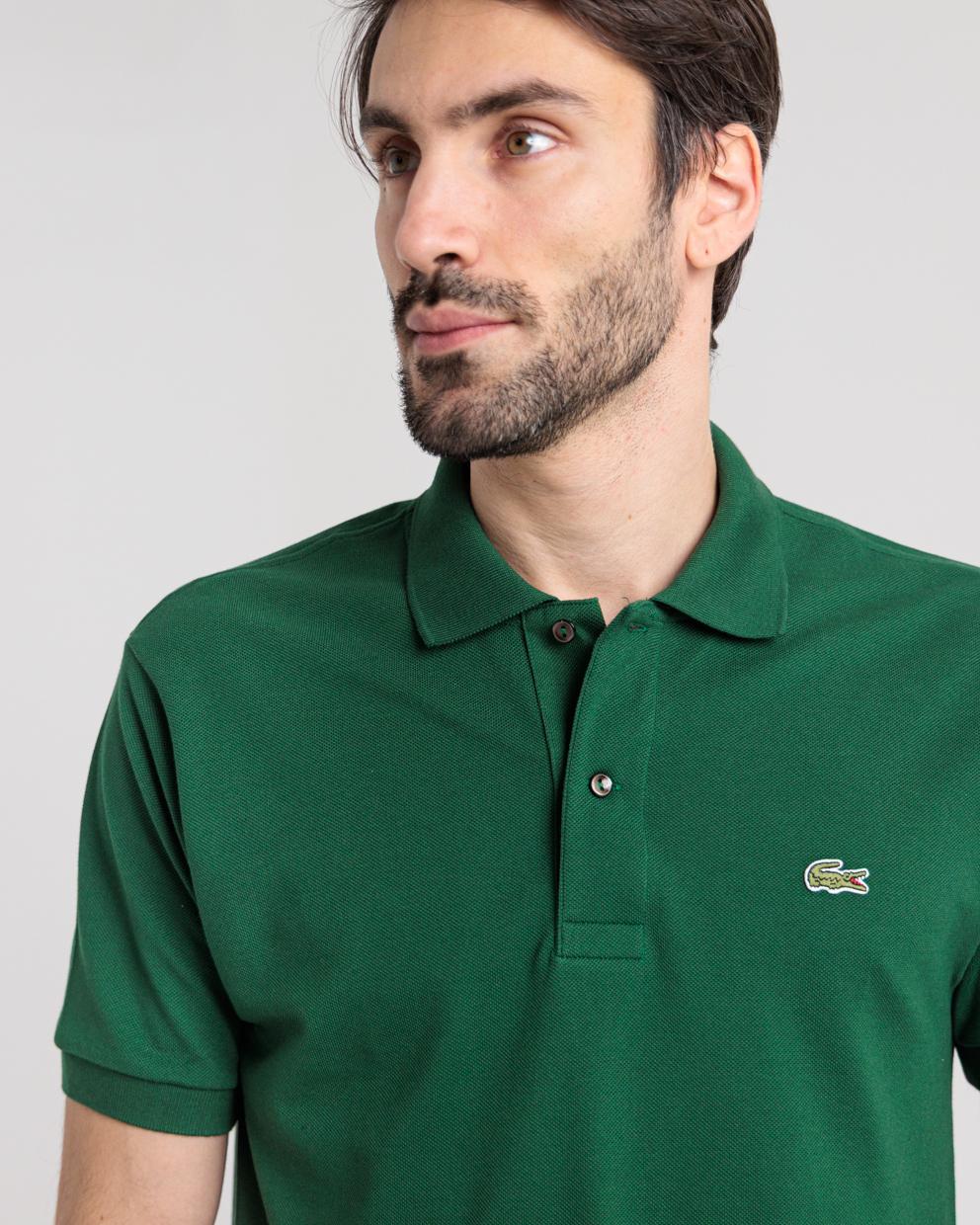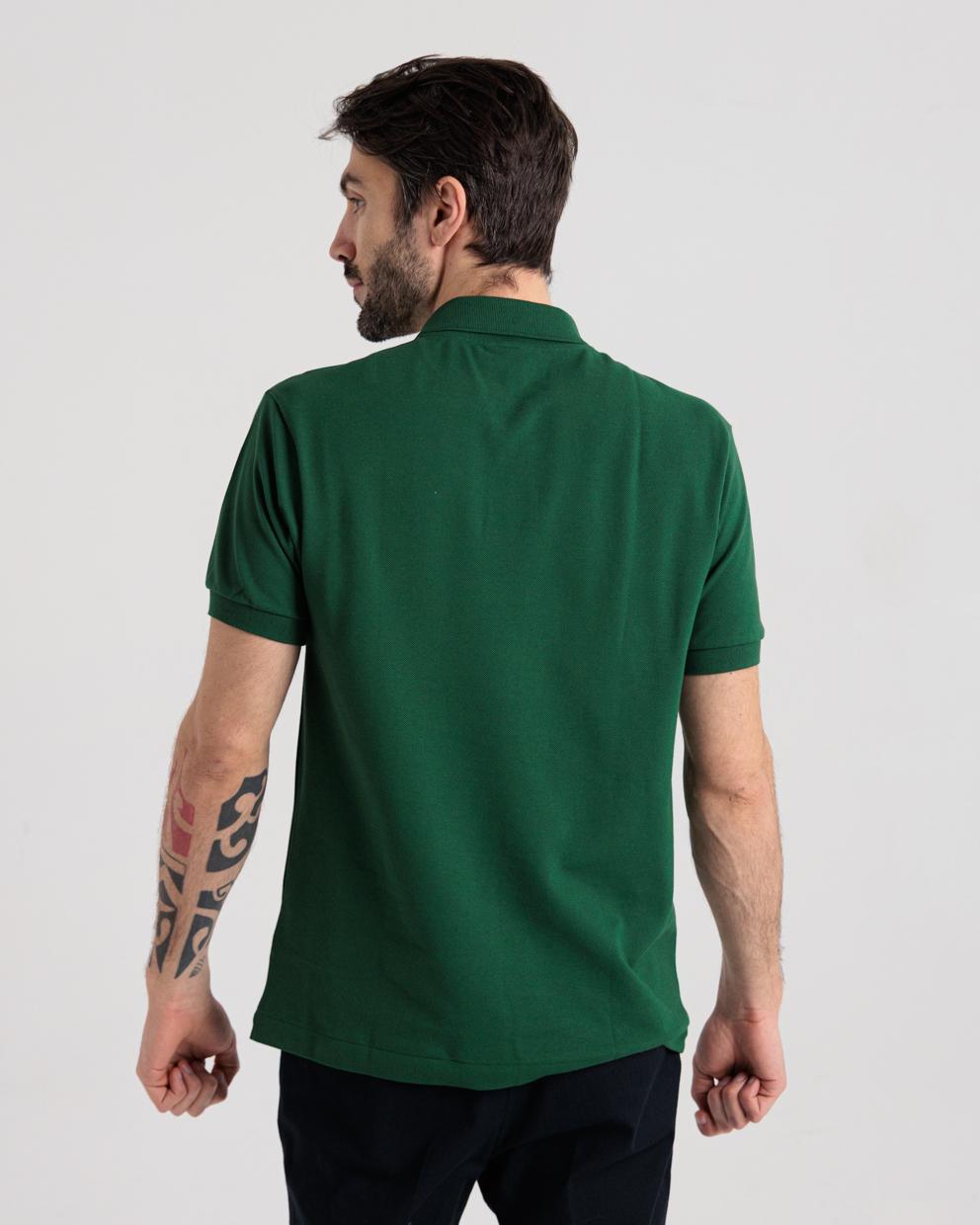 Polo manica corta verde in piquet di cotone