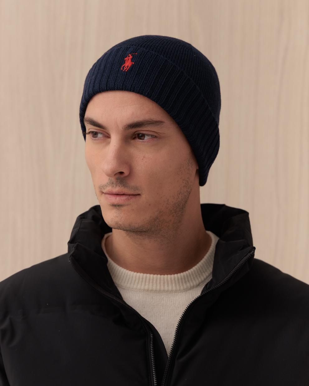 Berretto POLO RALPH LAUREN Blu in Lana a Coste