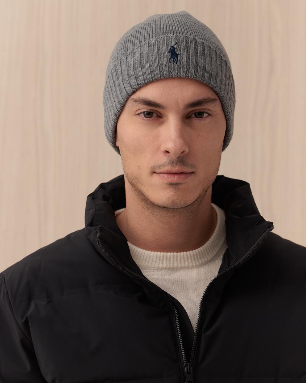 Berretto POLO RALPH LAUREN grigio in lana a coste