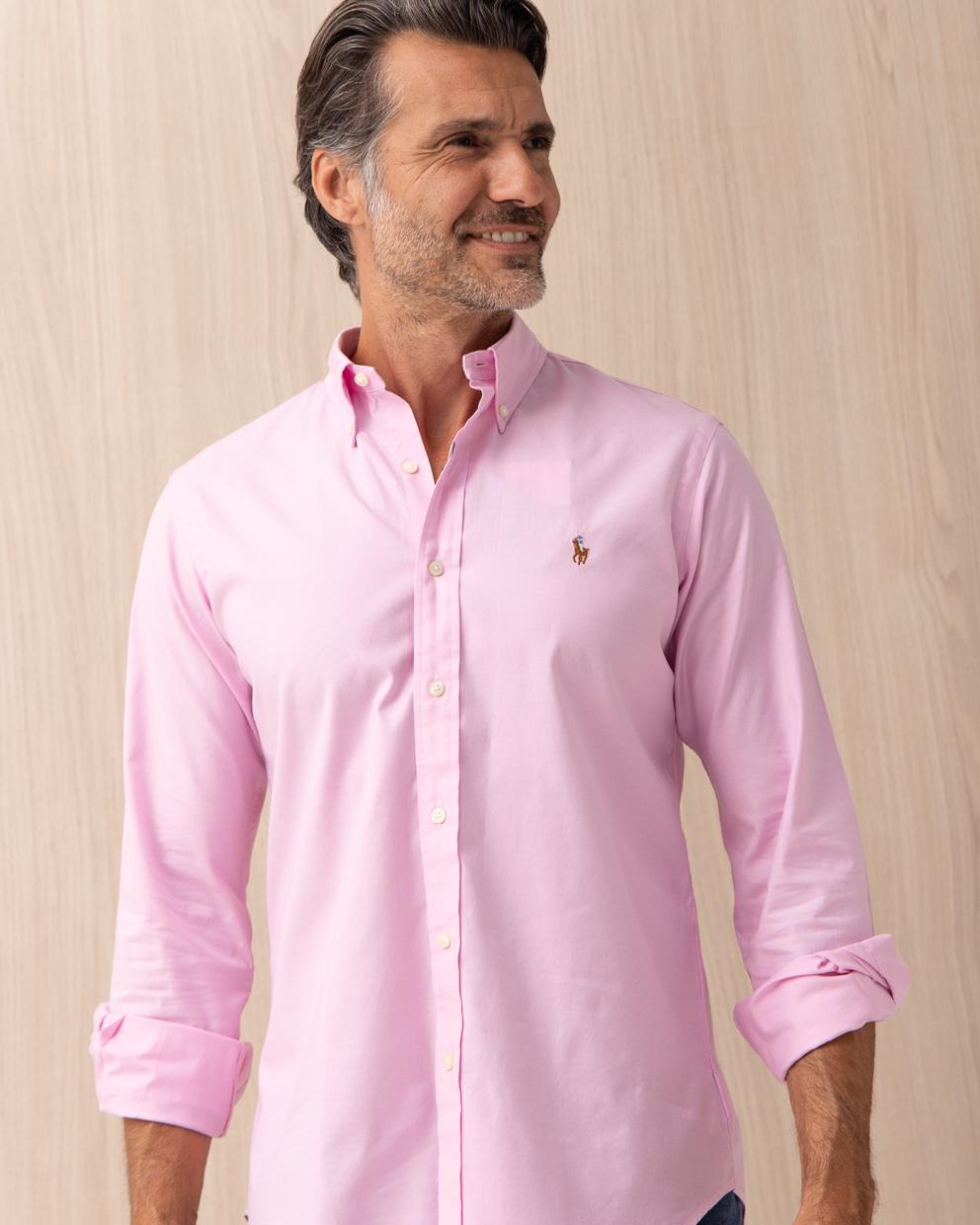 Camicia POLO RALPH LAUREN rosa in cotone Oxford stretch