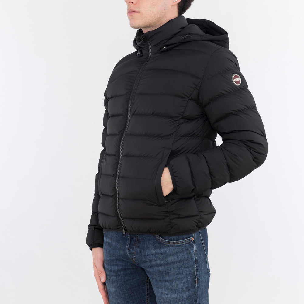 Veste homme à capuche amovible, réalisée en tissu stretch avec traitement déperlant et rembourrée de duvet naturel. Un modèle intemporel avec un matelassage régulier sur tout le corps et un ruban élastique assorti aux poignets et en bas. Poches latérales pratiques et poche intérieure pratique. Le cordon de serrage sur la capuche permet d'ajuster la largeur. Coupe régulière. Poids hivernal. Fermeture zippée. Poches latérales et poche intérieure zippée. Capuche amovible par boutons pression. Cordon de réglage sur la capuche. Bande élastique aux poignets et en bas. Rembourrage en plumes naturelles. Traitement déperlant. Logo Colmar Originals appliqué sur la manche gauche.