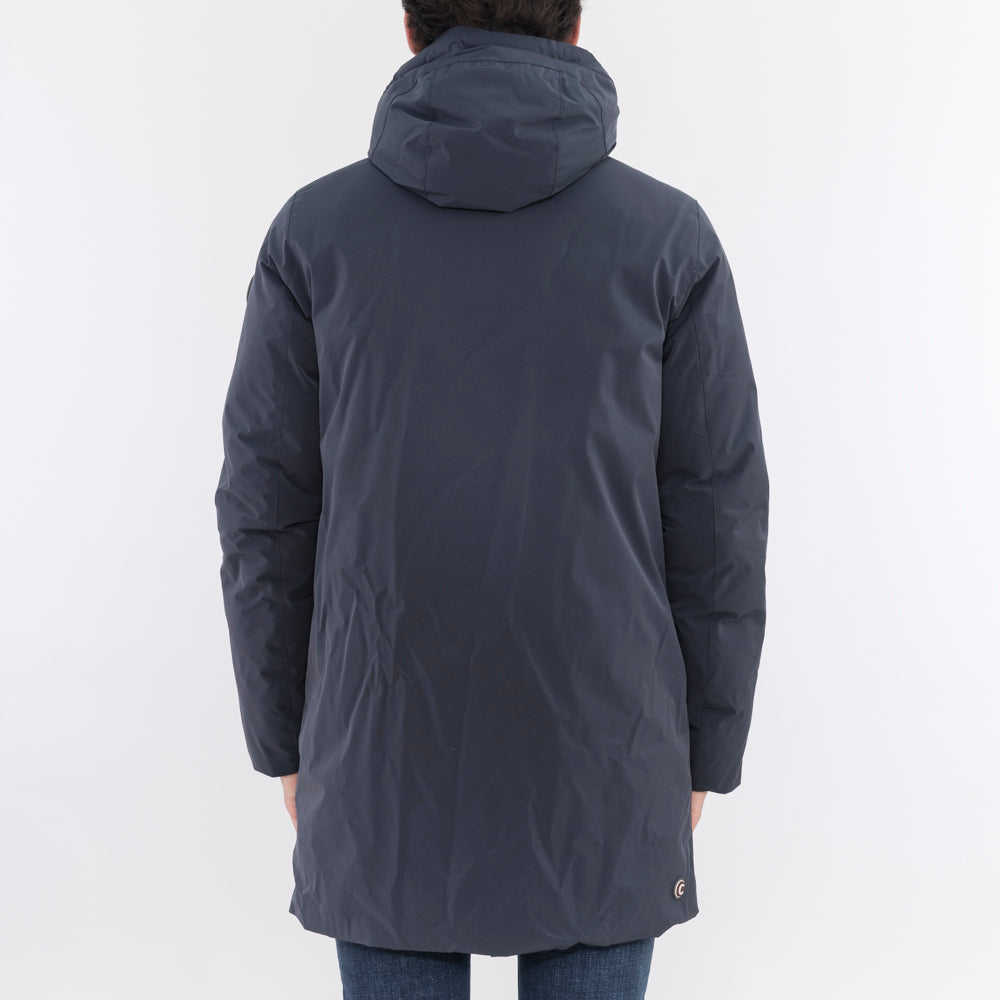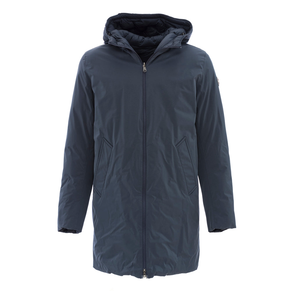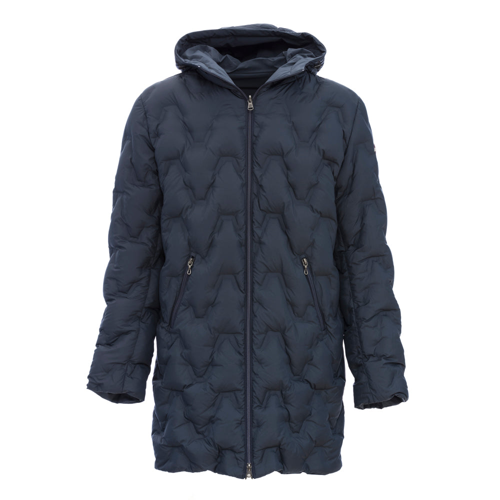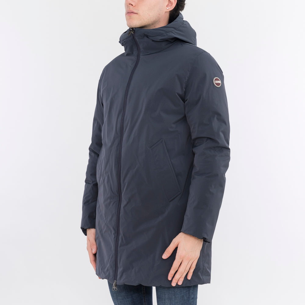 Veste homme réversible mi-longue à capuche fixe en tissu stretch mat avec traitement déperlant et imperméable (5 000 mm de colonne d'eau). Rembourré de duvet naturel. L'intérieur a été réalisé à l'aide d'un tissu à la construction particulière qui ne nécessite pas de couture et qui crée un motif en « V », une alternative au matelassage classique. Pratique et confortable, il se prête à différents usages pour différentes occasions. La partie lisse est minimale et épurée, la partie matelassée est créative et insolite. Un vêtement éclectique et polyvalent pour affronter la saison hivernale. Coupe régulière. Poids hivernal. Fermeture zippée. Poches latérales avec zip sur le côté matelassé. Poches latérales avec boutons pression sur le côté lisse. Capuche fixe avec cordon de réglage. Rembourrage en plumes naturelles. Traitement déperlant sur tissu lisse. Imperméabilité du tissu lisse : colonne d'eau de 5 000 mm. Logo Colmar Originals appliqué sur la manche gauche.