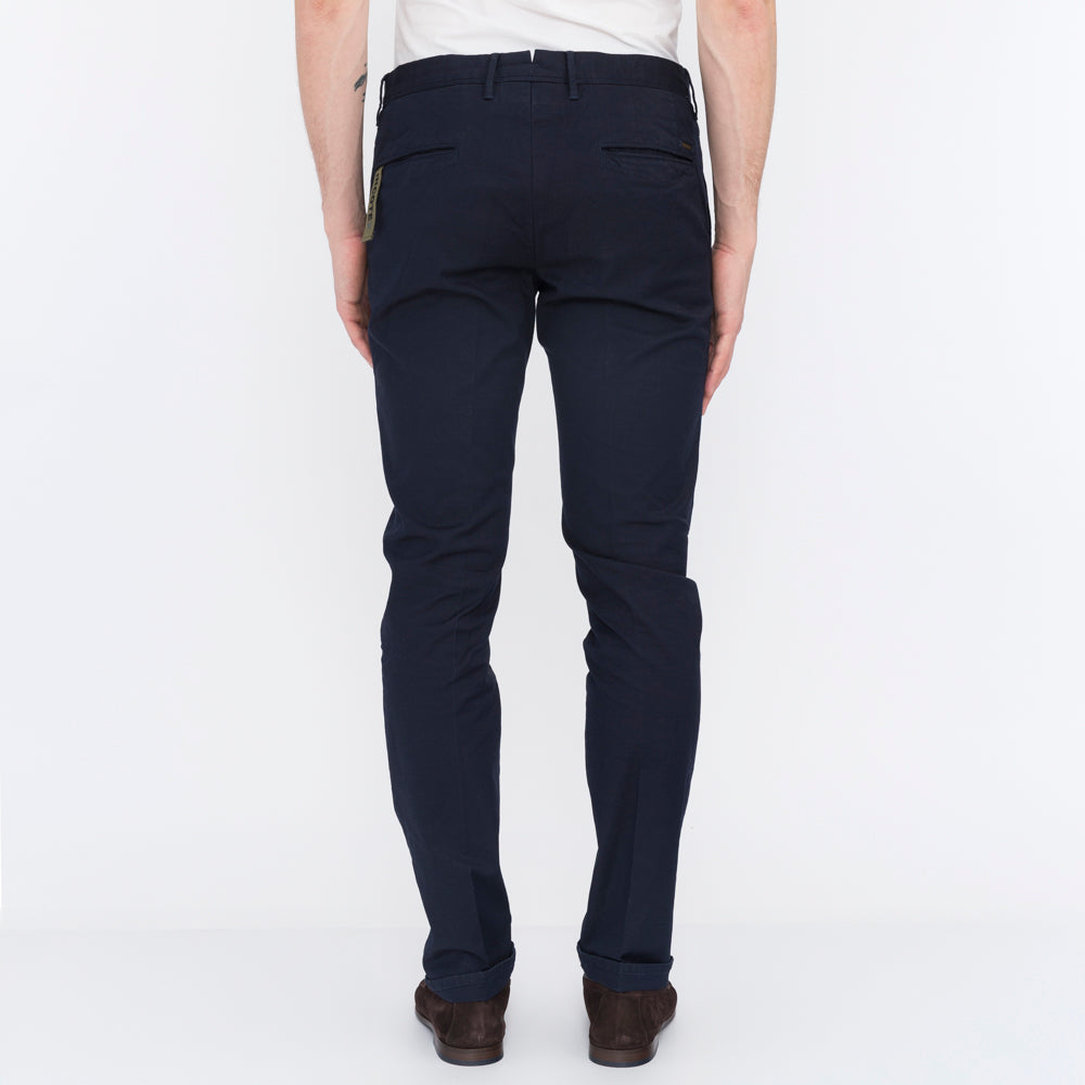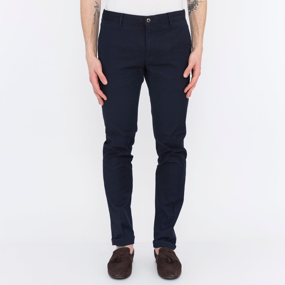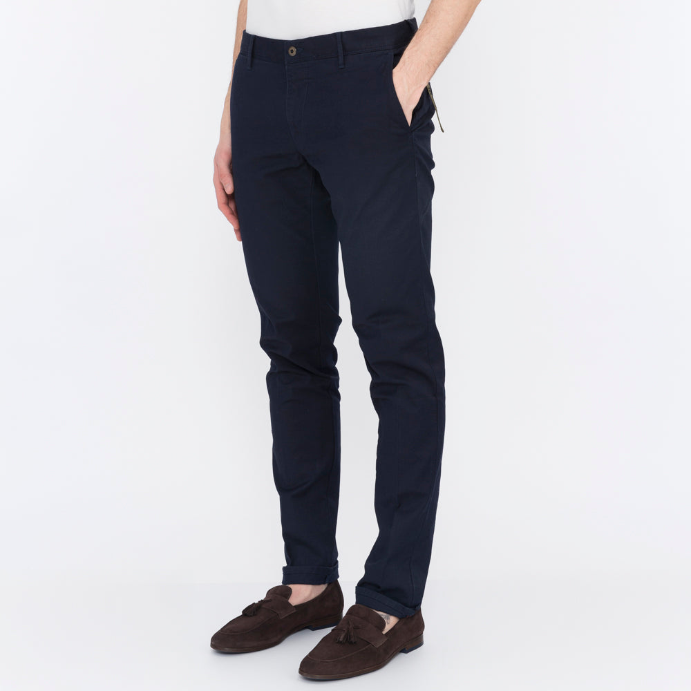 Pantalon chino avec taille avec passants, fermeture avec bouton et zip, deux poches avant et deux poches arrière passepoilées.