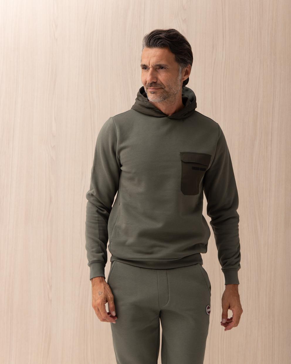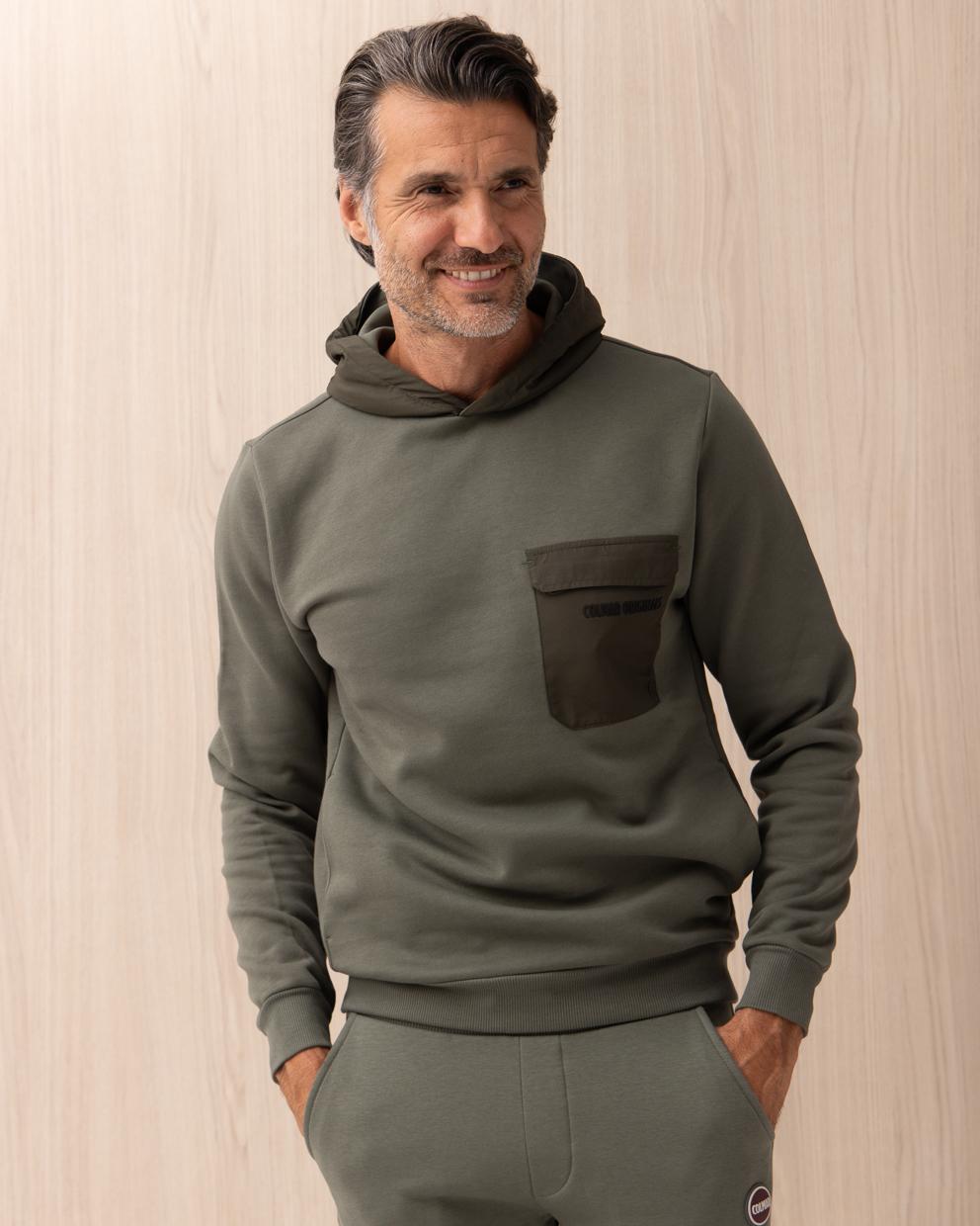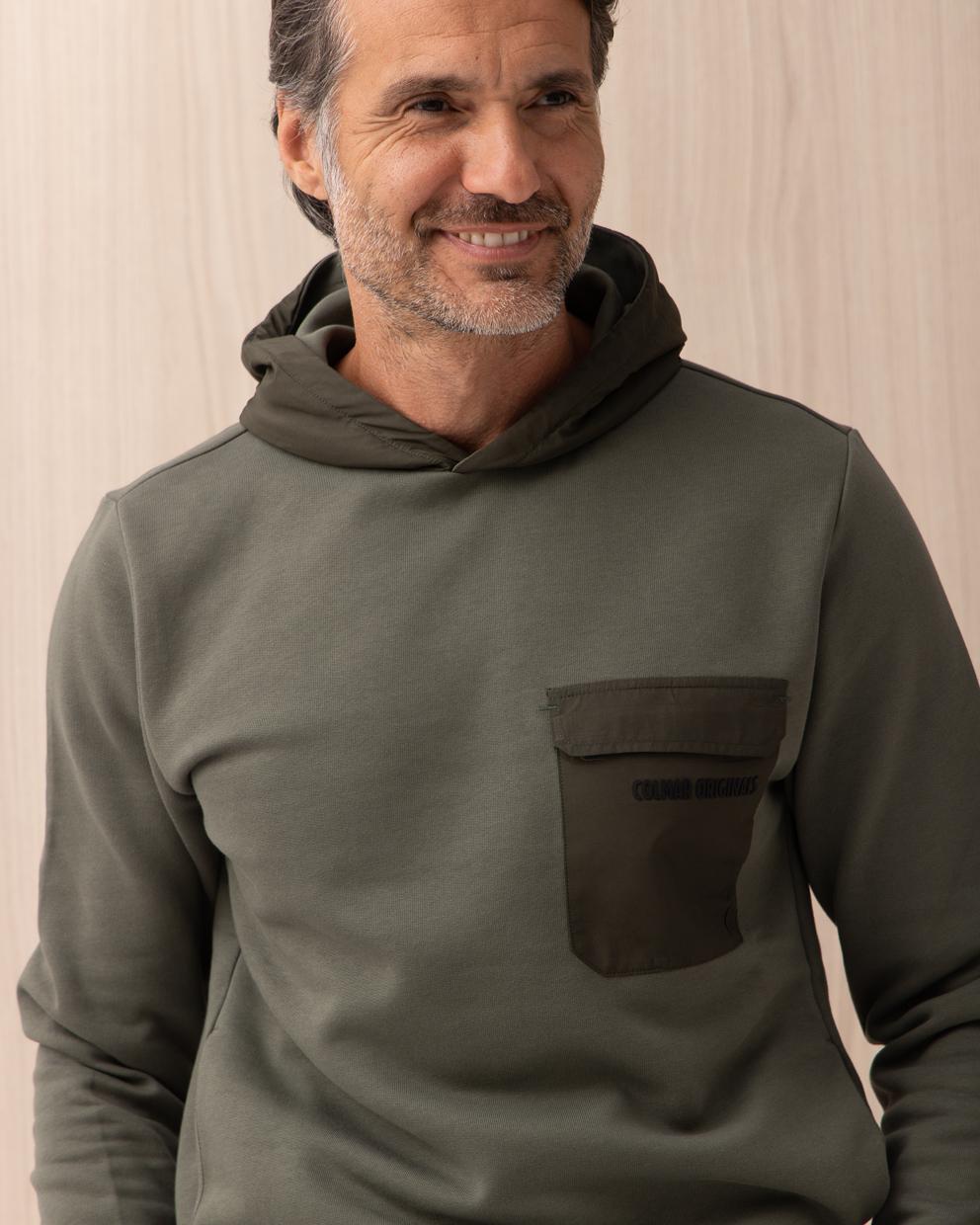 Felpa Colmar Verde bimateriale in cotone con cappuccio