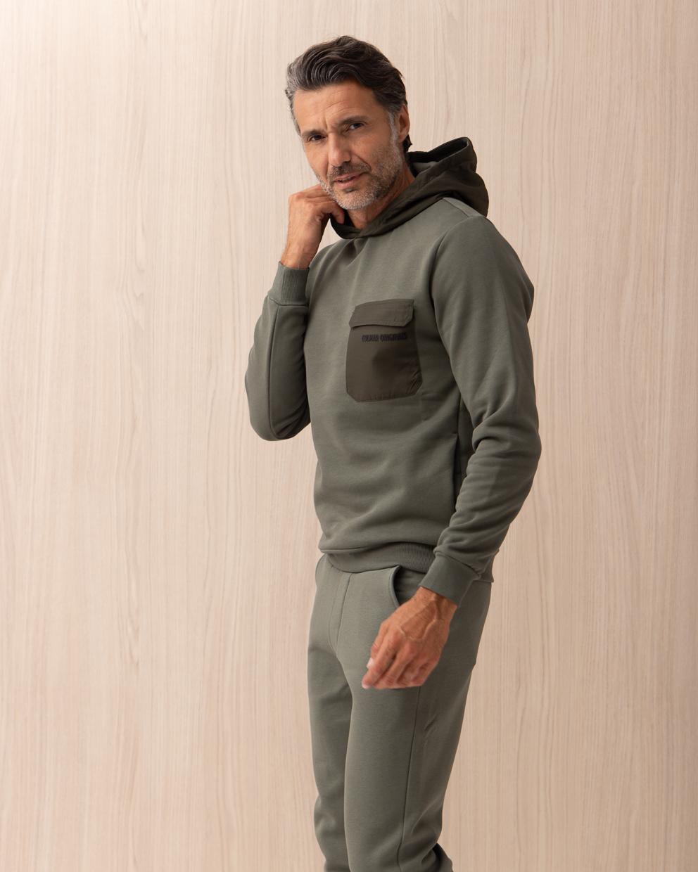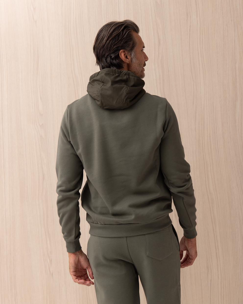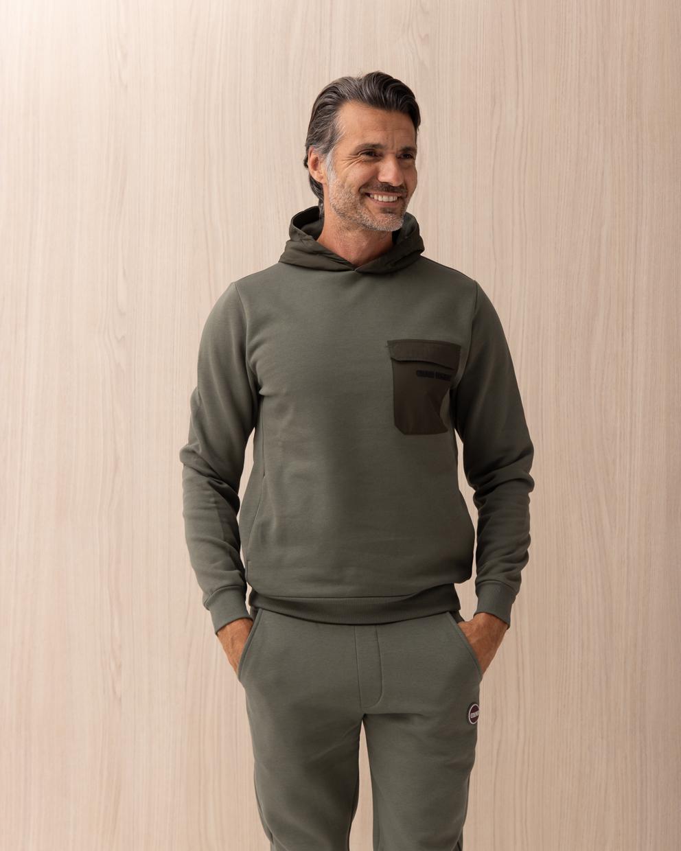 Felpa Colmar Verde bimateriale in cotone con cappuccio