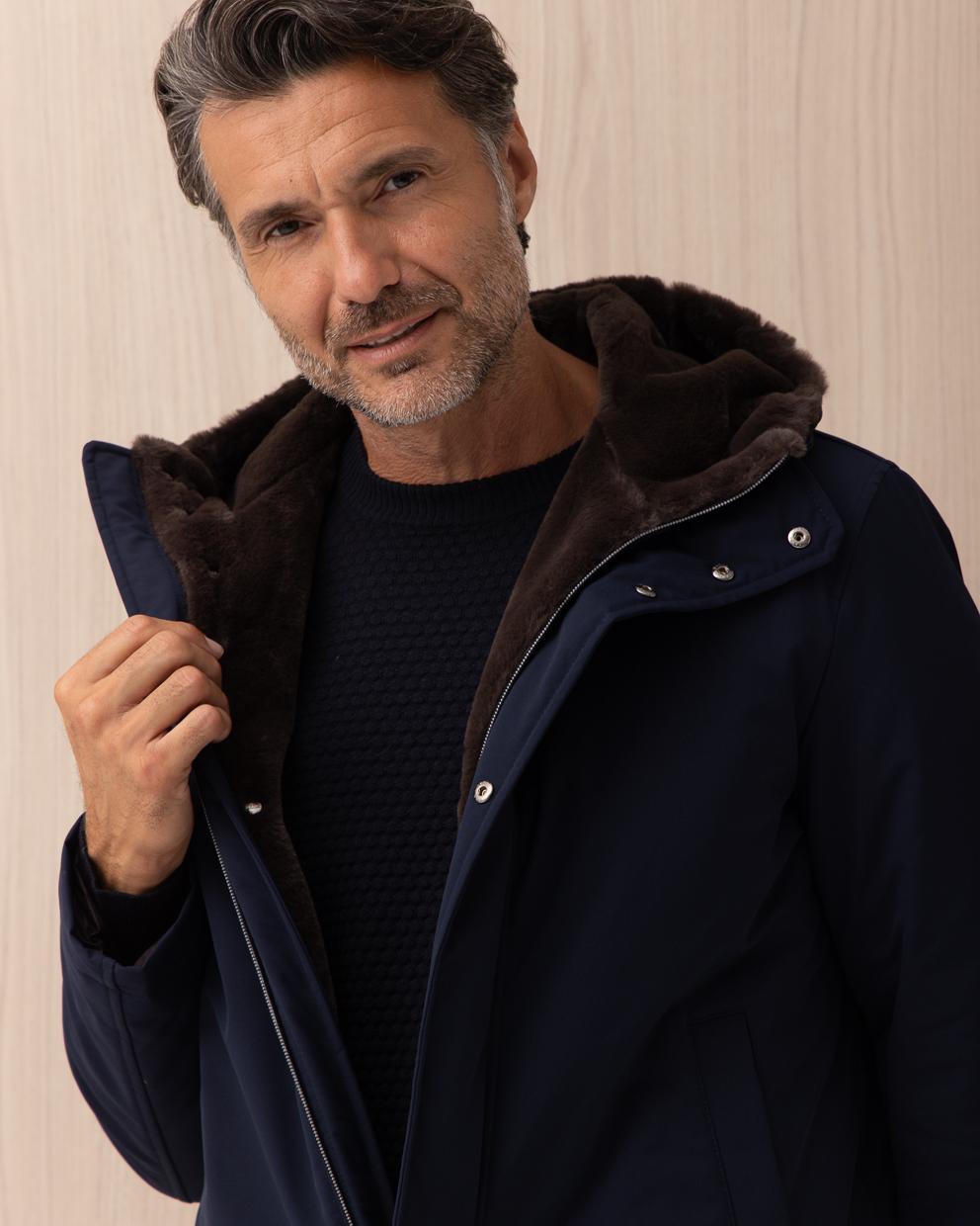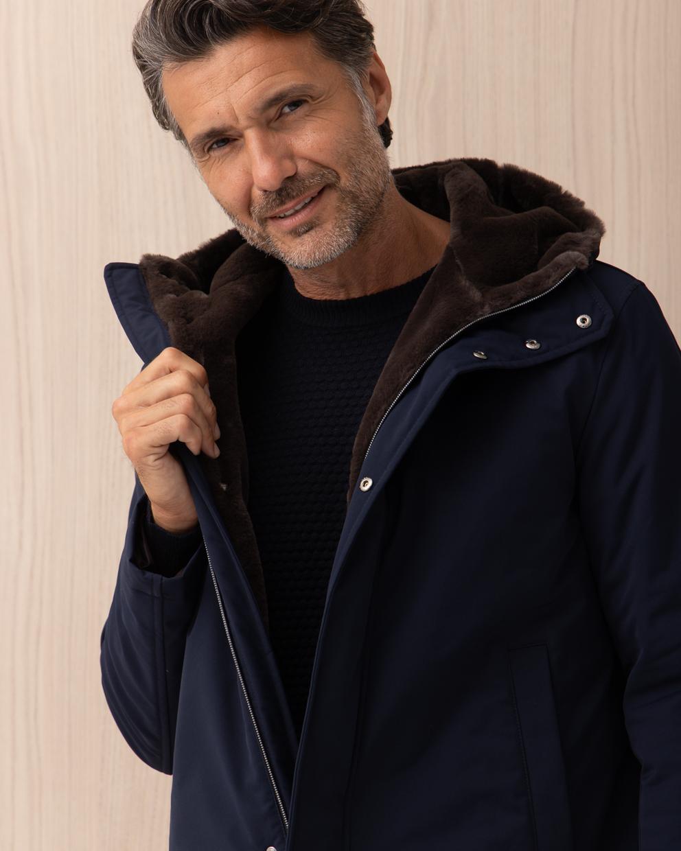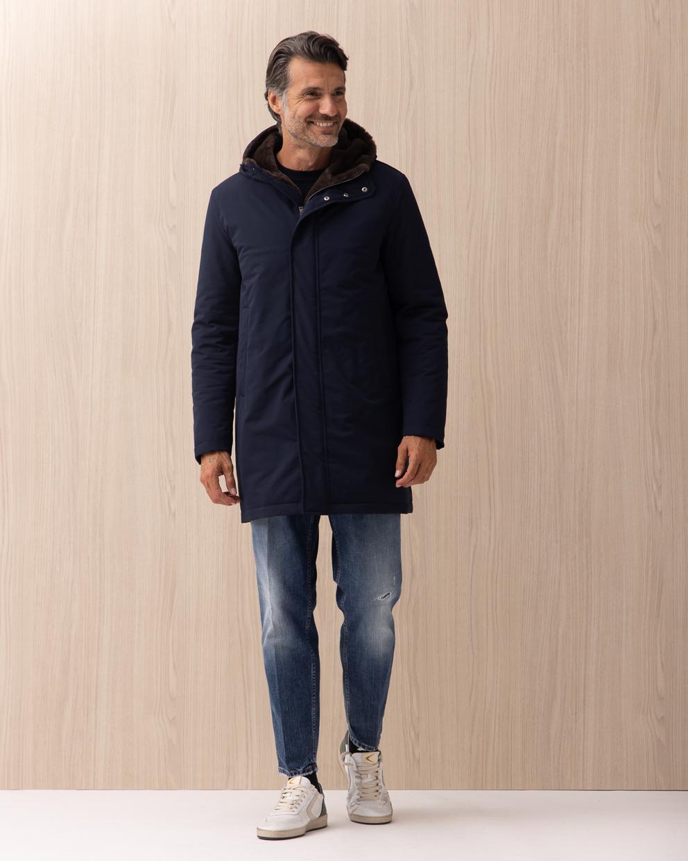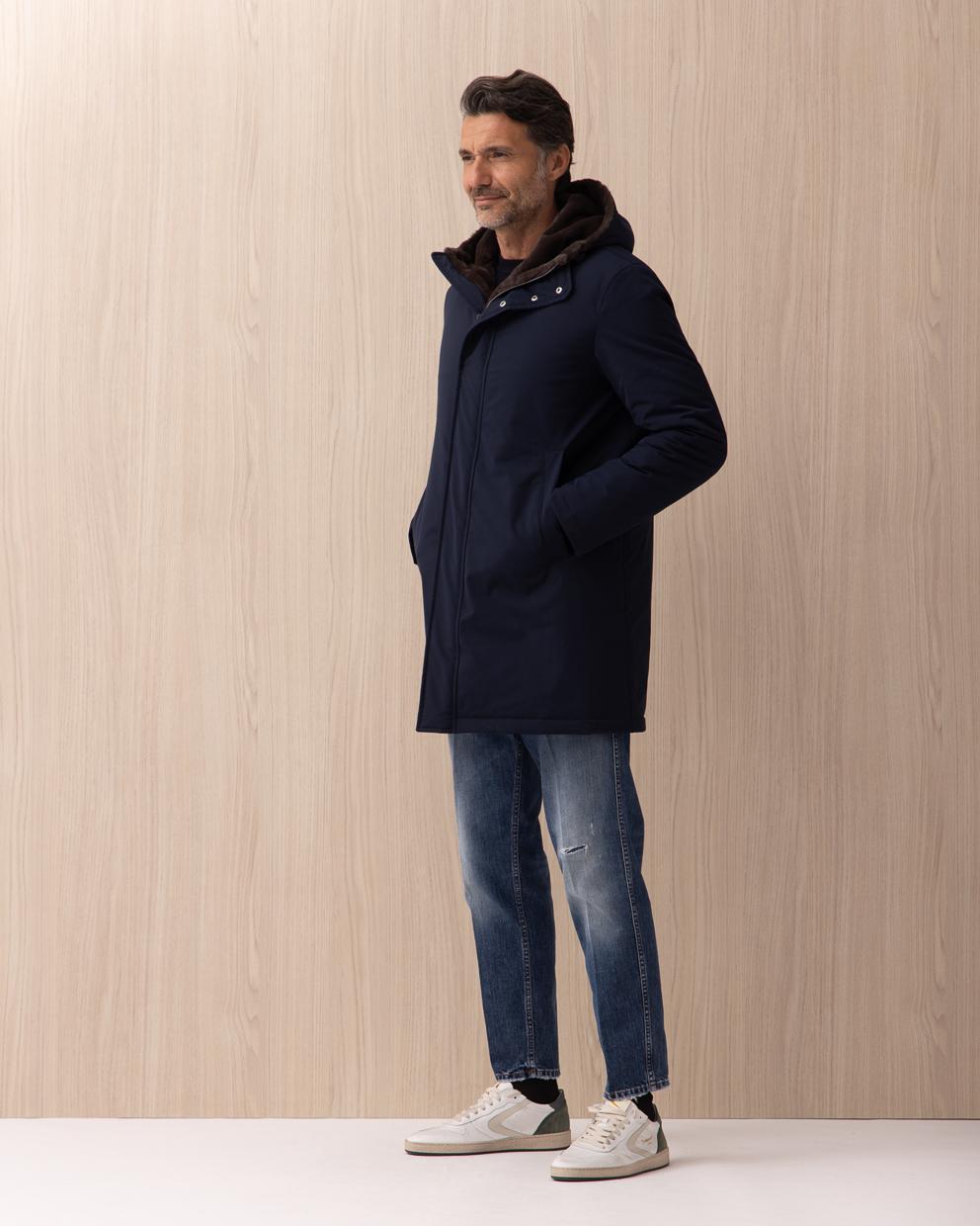 Parka HERNO blu in poliestere con ecopelliccia staccabile