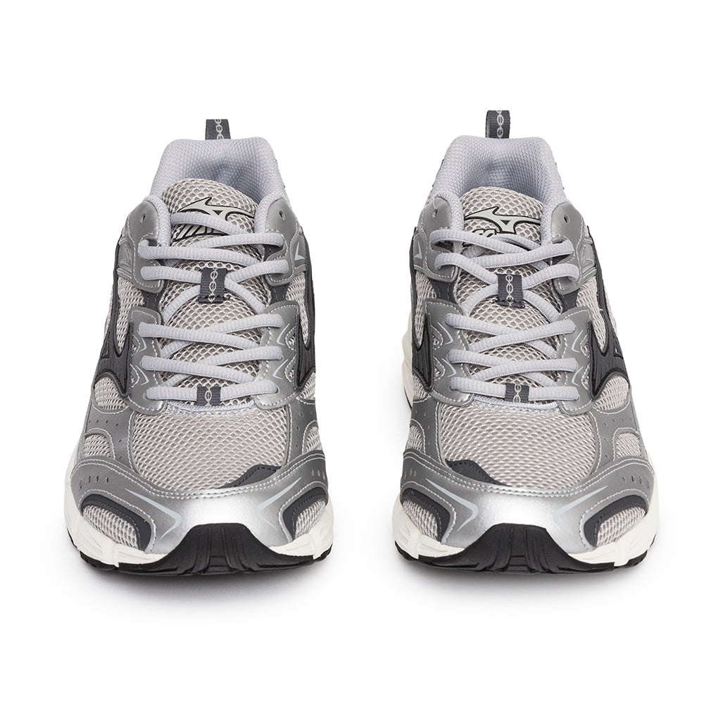 La MXR è una silhouette entry level, ma rimane fedele all'essenza di Mizuno, con un alto livello di qualità e tecnicità. Un'attenzione speciale alla nuova attrezzatura, con un alto livello di dettagli e più parti in gomma che consentono blocchi di colore tecnici. Questo mood è tecnico, utilizzando ripstop e nubuck sintetico, combinato con dettagli riflettenti e lacci in corda.
